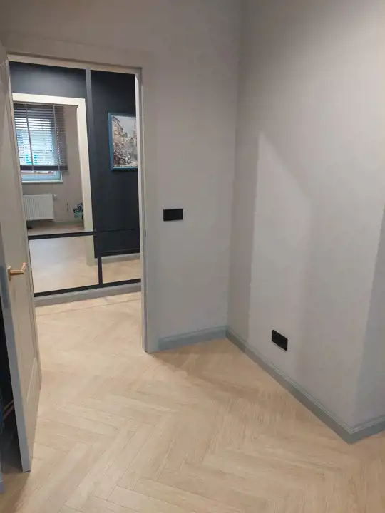 Na podłogach wysokiej klasy panele imitujące parkiet, na ścianach gładzie ozdobione sztukaterią.