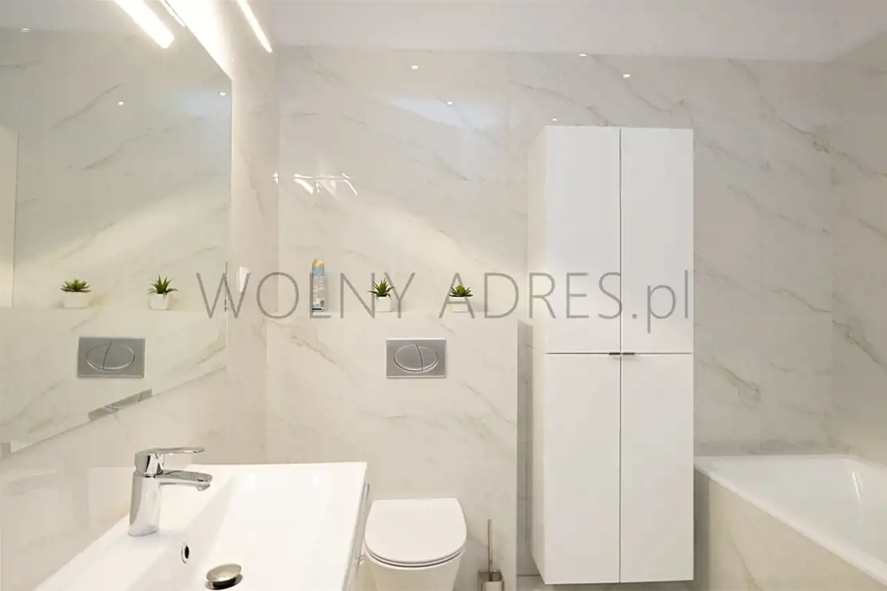 Apartament wykończony, umeblowany i wyposażony w wysokim standardzie. Wygodne meble codziennego użytku, optymalnie zagospodarowana kuchnia ( pełne AGD), liczne szafy i wnęki gospodarcze.