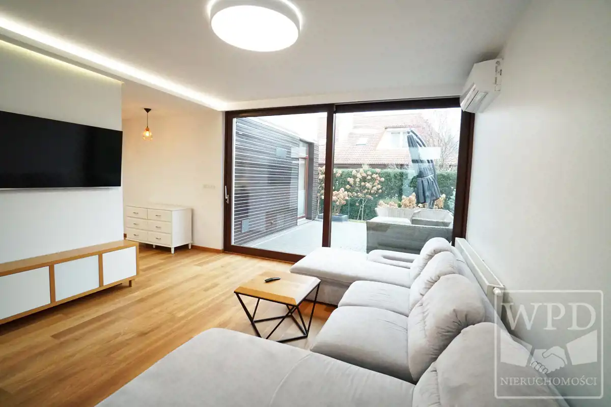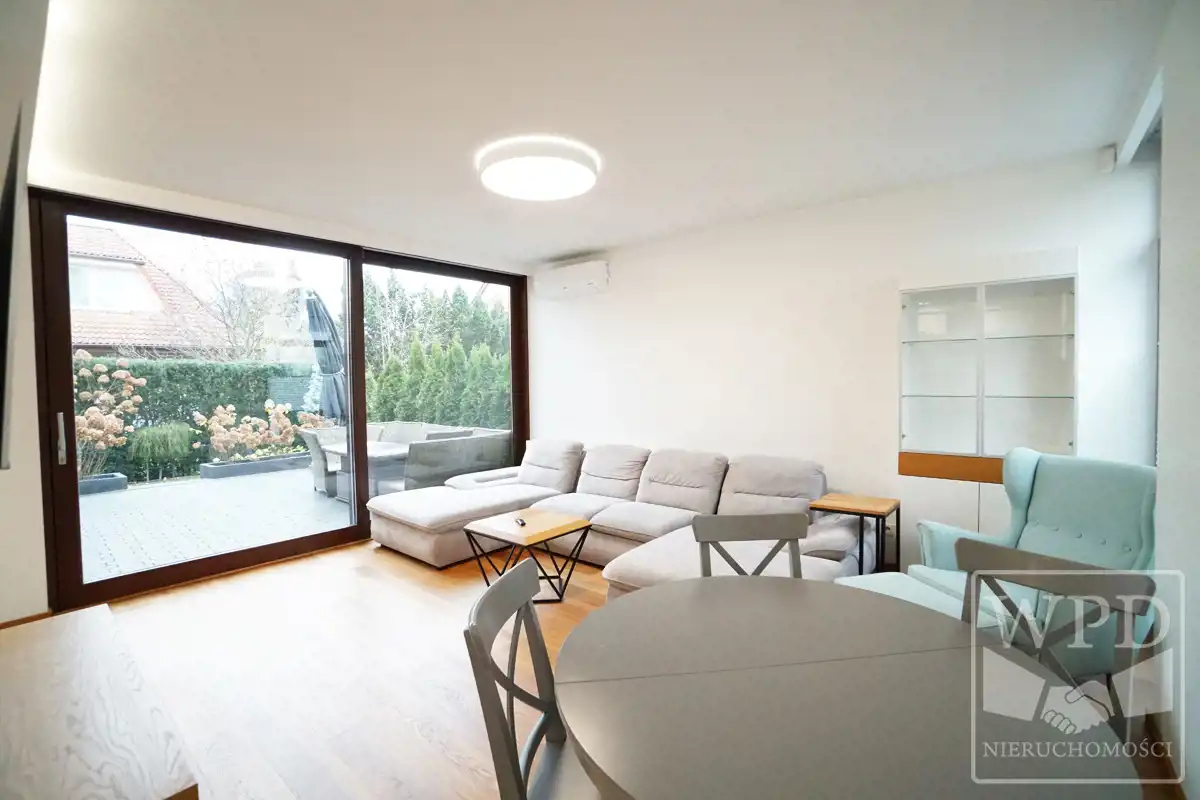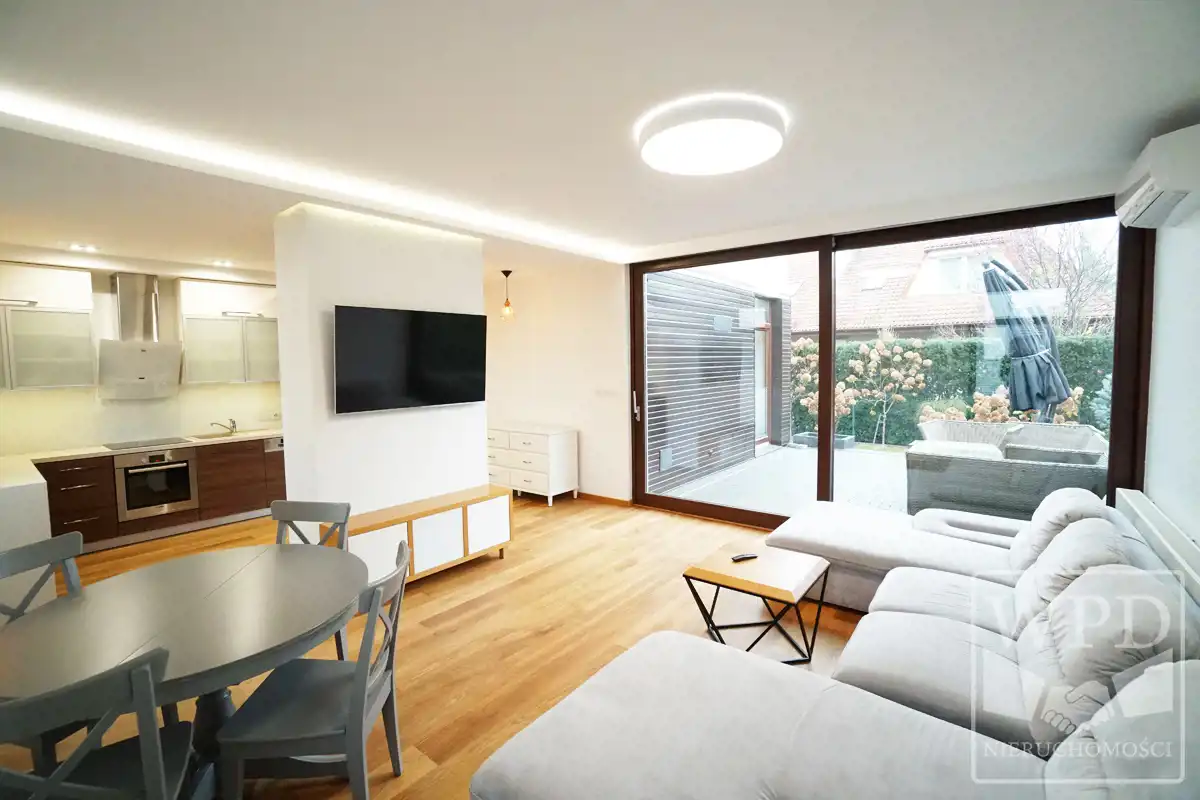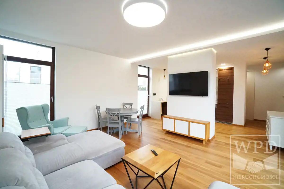 OPIS APARTAMENTU: Mieszkanie o powierzchni 80m2. Składa się z salonu połączonego z kuchnią, dwóch sypialni, łazienki, przedpokoju, pomieszczenia technicznego oraz ogrodu.