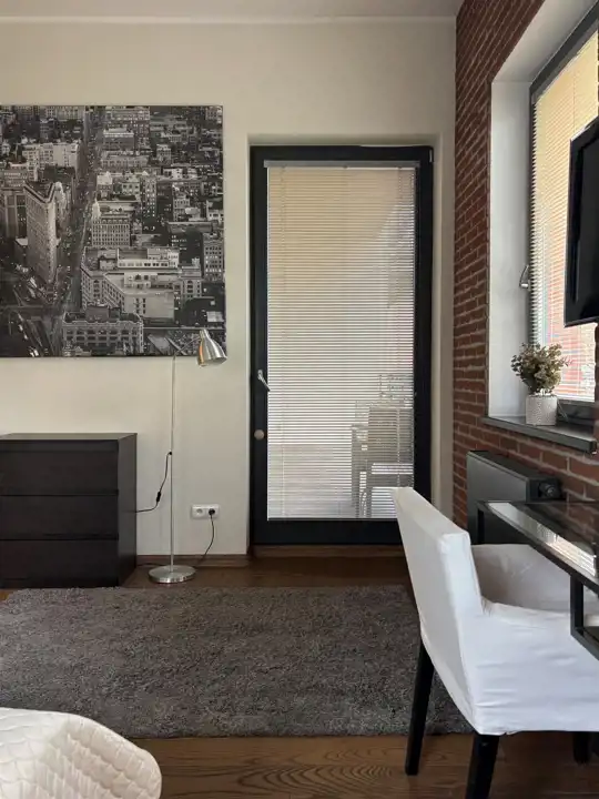 Duże okna zapewniają świetne doświetlenie wnętrz. Mieszkanie w stylu loft o wysokich sufitach zapewnia przestronność pomieszczeń, a wnętrze zaprojektowane przez architekta gwarantuje funkcjonalność mieszkania i wysoki standard wykończenia.