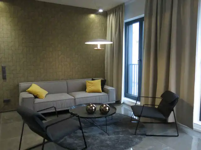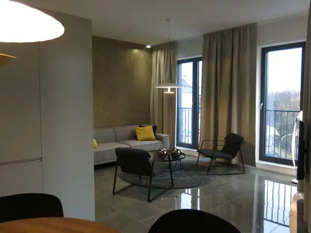 APARTMENT: Beatifull apartment of 70 sqm consist of living room with open plan kitchen, 2 bedrooms, bathroom, hall and large balcony. Worth mentioning is the high-ceilinged dining ( 3m), which in combination with the large windows provide sunlight even on winter day. Apartment is beautifully decorated, with a tasteful interior design. The apartment is fully furnished and equipped. Kitchen with necessary accessories and appliances: fridge-freezer, dishwasher, induction hob, oven. The elegant bathroom, equipped with a washing machine. The apartment has a pleasant, modern interior, ideal for demanding customers.To rent from now. I would recommend.
