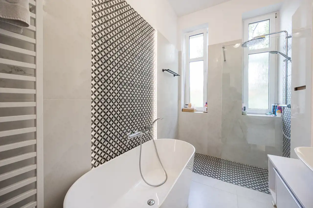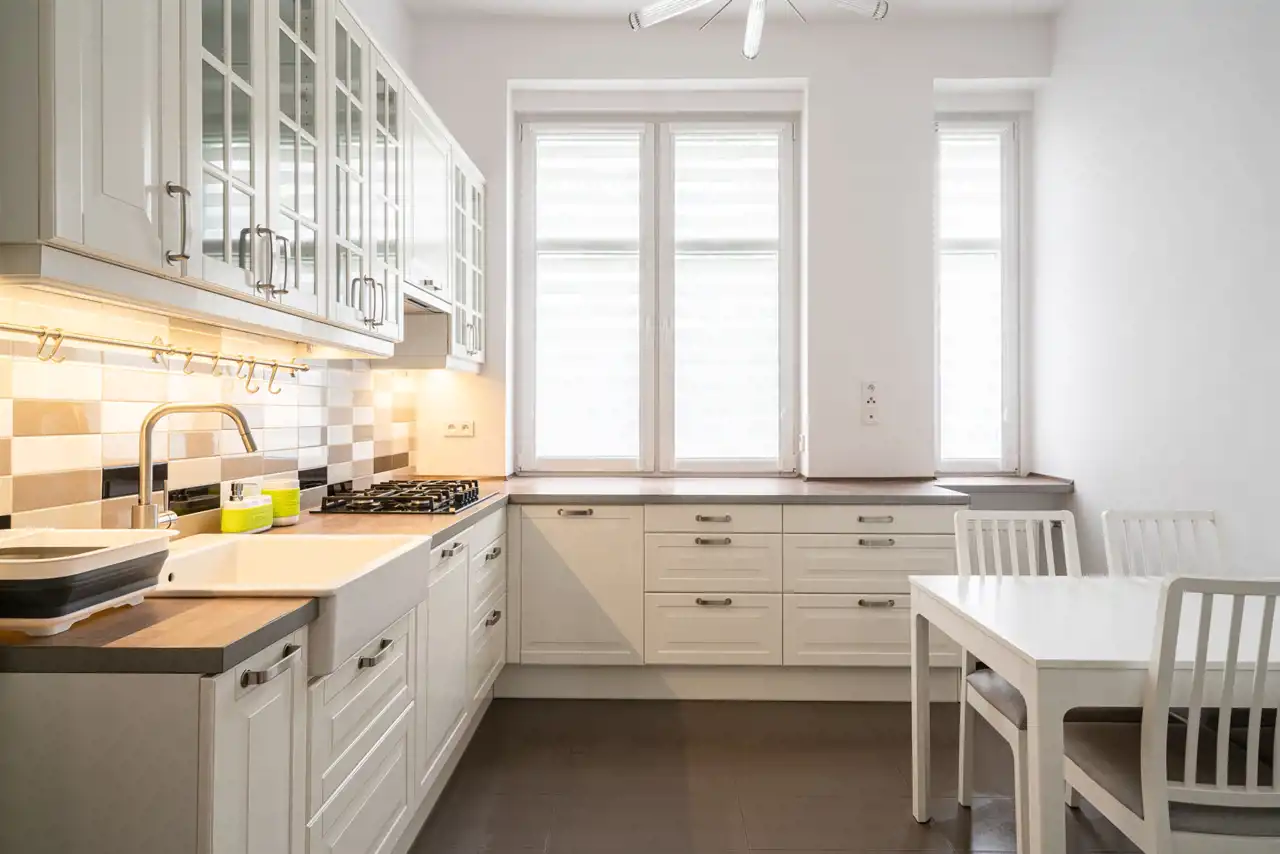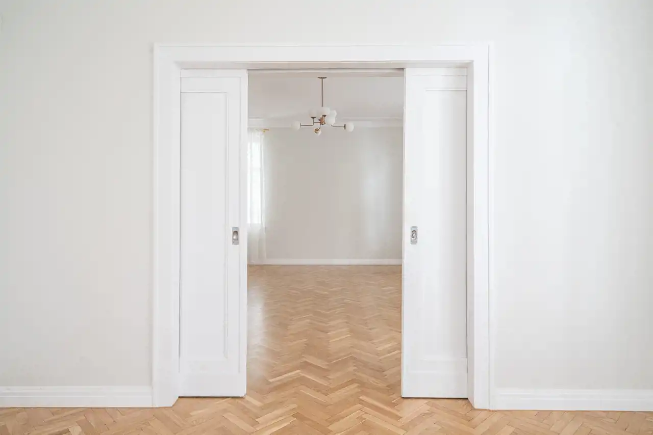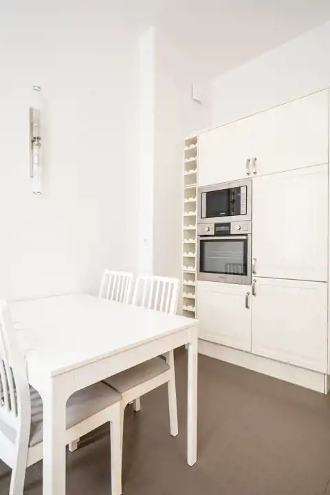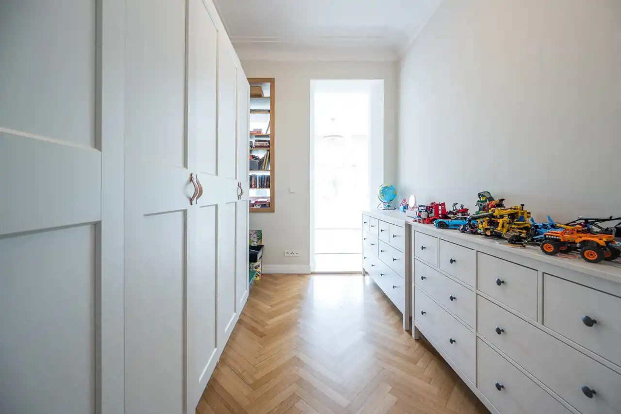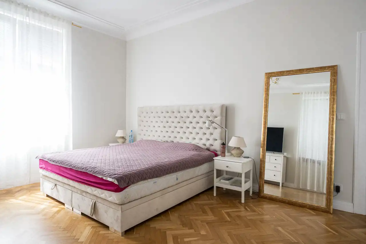 Serce apartamentu to dwa przestronne pokoje dzienne połączone ze sobą przesuwanymi, pięknie odrestaurowanymi drzwiami. Tu centralne miejsce zajmuje stół dedykowany rodzinnym spotkaniom. Piękne, wysokiej klasy PCV okna wpuszczają do wnętrz mnóstwo naturalnego światła.