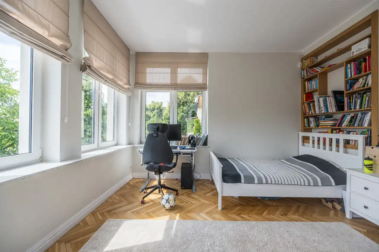 Dodatkowo, w mieszkaniu znajdują się dwa ustawne pokoje dziecięce oraz sypialnia rodziców, co pozwala na stworzenie niezależnej przestrzeni dla każdego domownika. Oddzielna, w pełni wyposażona kuchnia. Mieszkanie rozłożone na planie kwadratu. Z przedpokoju wchodzimy do każdego z pomieszczeń. Warto podkreślić, że apartament posiada dużą garderobę, co z pewnością docenią osoby ceniące sobie wygodę oraz funkcjonalność.