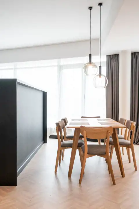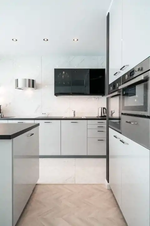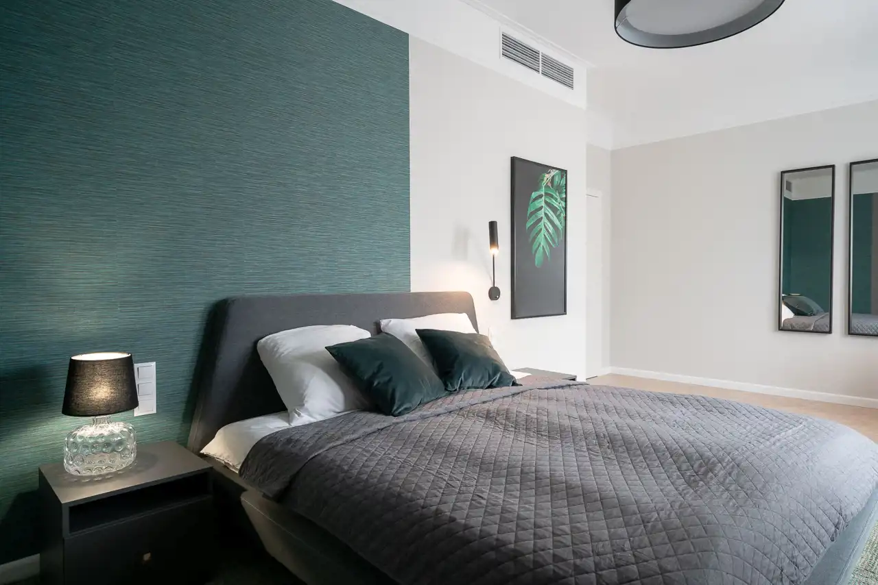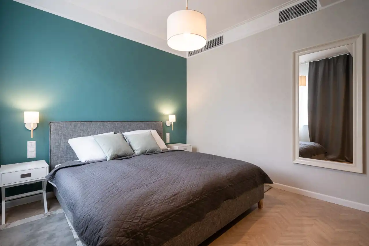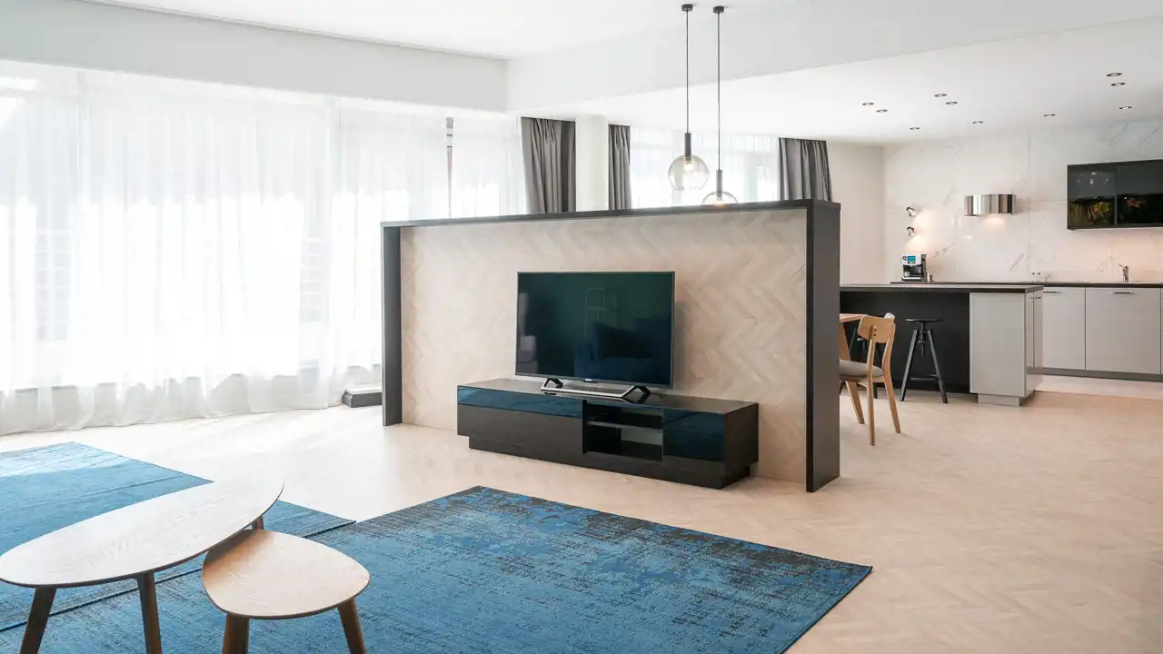 Wysokiej jakości materiały wykończeniowe, jak również meble i dodatki. Zadbano by apartament spełnił oczekiwania nawet najbardziej wymagającego klienta - komfortowe wyposażenie- wysokiej klasy sprzęt RTV I AGD.