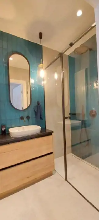 Na podłogach we wszystkich pomieszczaniach z wyjątkiem łazienek (gustowne nowoczesne kafle) są panele podłogowe wykonane z winylu co zapewnia komfort i estetykę w użytkowaniu.