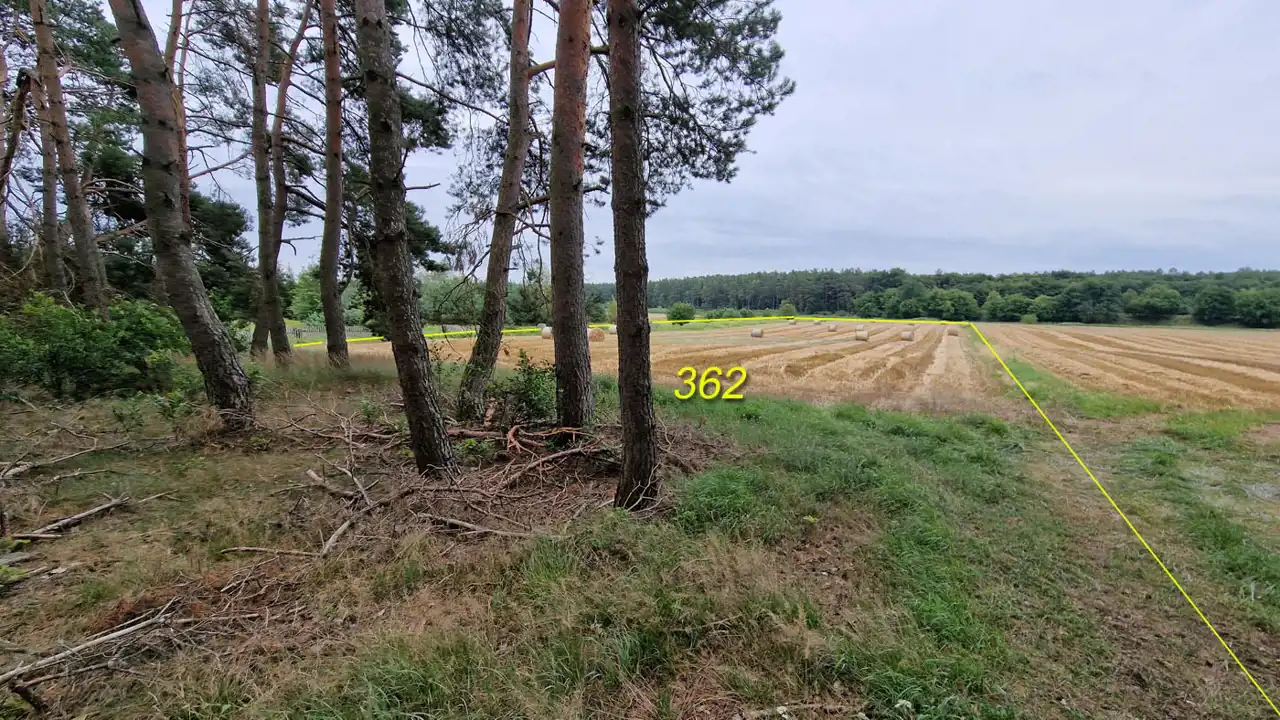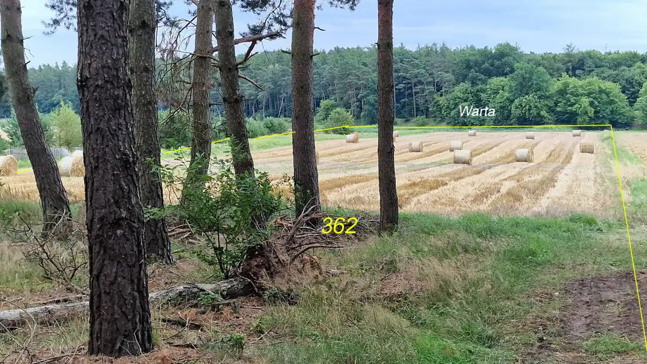 Działka o numerze ewidencyjnym 362 ma kształt trapezu o wymiarach ok 42m (front) x 356 m (głębokość). Położona nad samą Wartą. Działka ta w części położónej wyżej zadrzewiona jest sosnowym lasem, a bliżej Warty stanowi pole uprawne dla zboża. Właściciele dzierżawią tą najbliżej położoną rzeki Warty część działki rolnikowi.