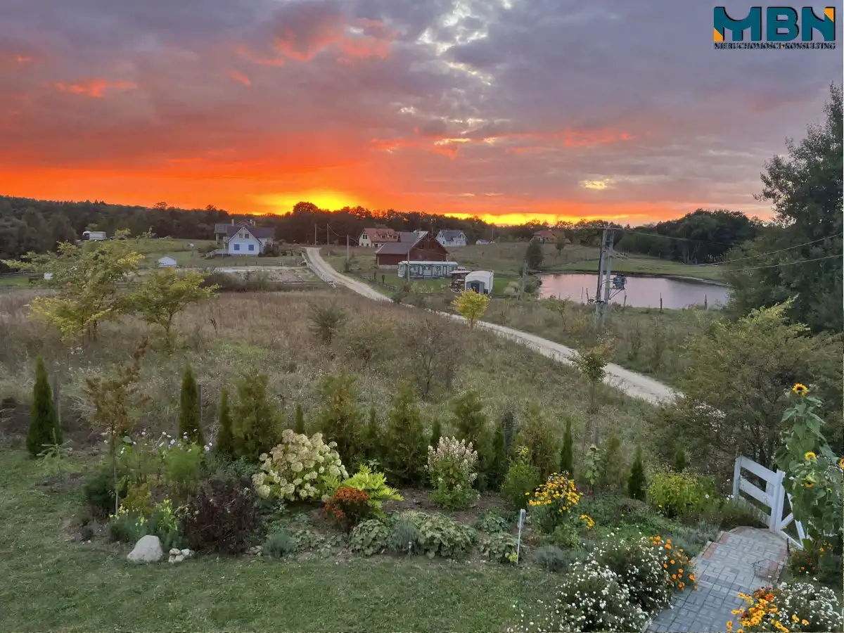 - Działka dzięki umiejscowieniu na pagórku ma panoramiczny widok na jezioro i okolicę;