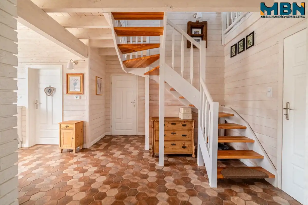 Podłogi: na parterze terakota, na poddaszu deska malowana;