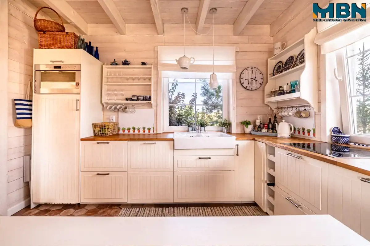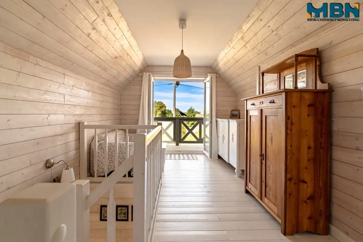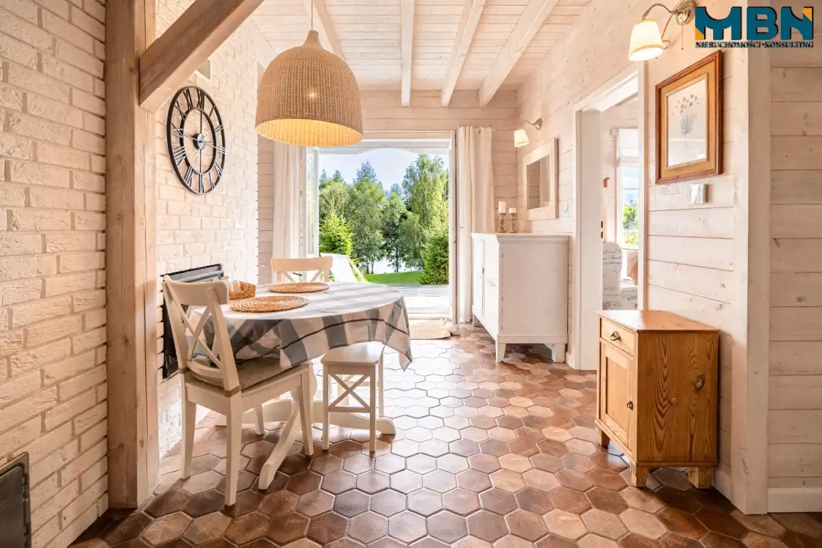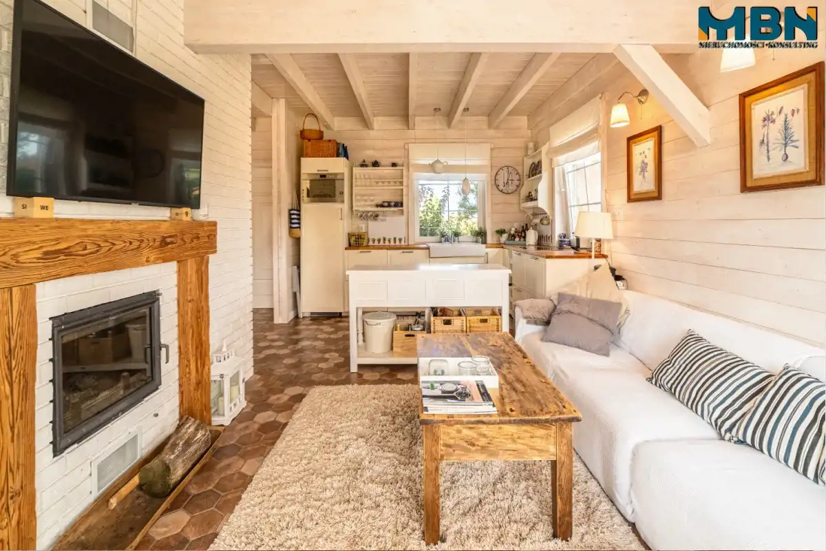 aneks kuchenny o pow. 8,55m2 w pełni wyposażony (zabudowa na wymiar, płyta indukcyjna SIMENS, lodówka w zabudowie, zlewozmywak dwukomorowy porcelanowy);