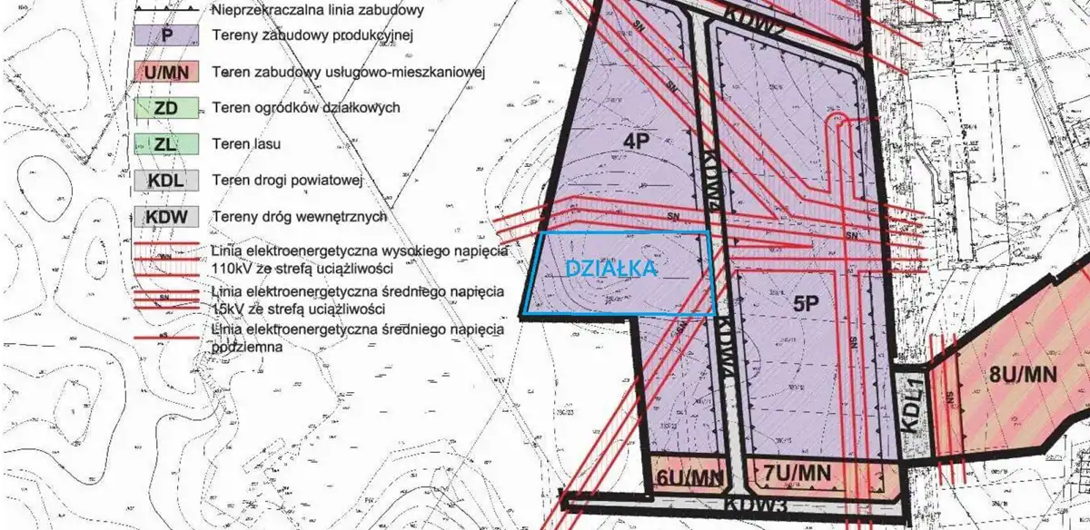 Działka objęta obowiązującym miejscowym planem zagospodarowania przestrzennego i oznaczona symbolem 4P;