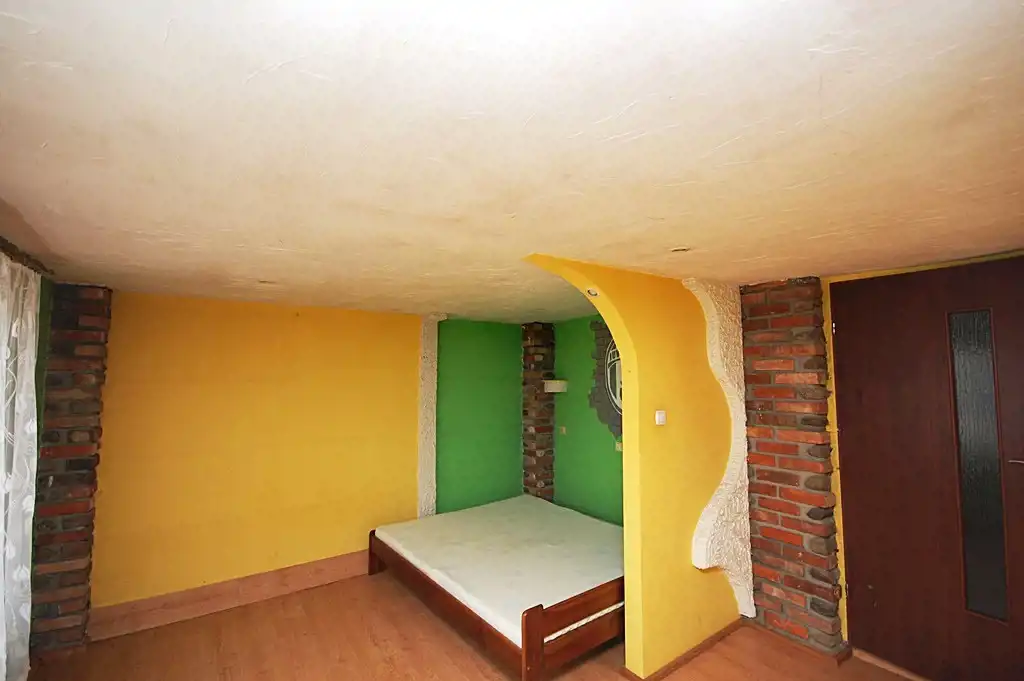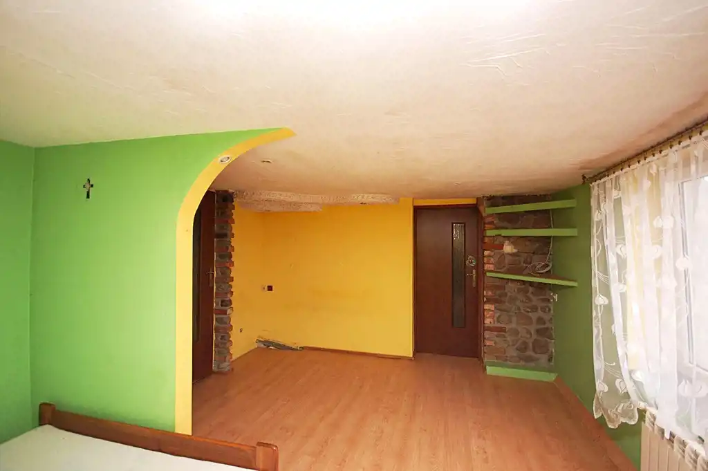 2.Pokój ok 15,10m2 podłoga panele,ściany płyta karton-gips,imitacja piaskowca,okno pcv+garderoba ok 3m2/wejście na część strychową/