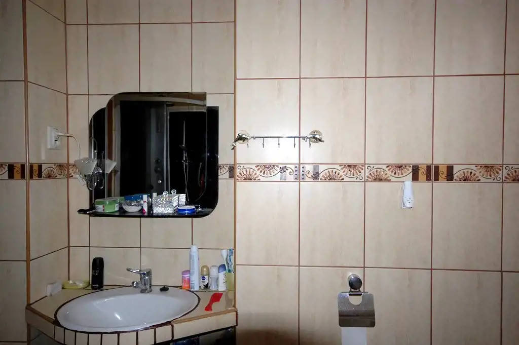 ok. 9,20m2 – na ścianach częściowo glazura do 1/2 wysokości, a częściowo panele ścienne, na podłodze terakota.