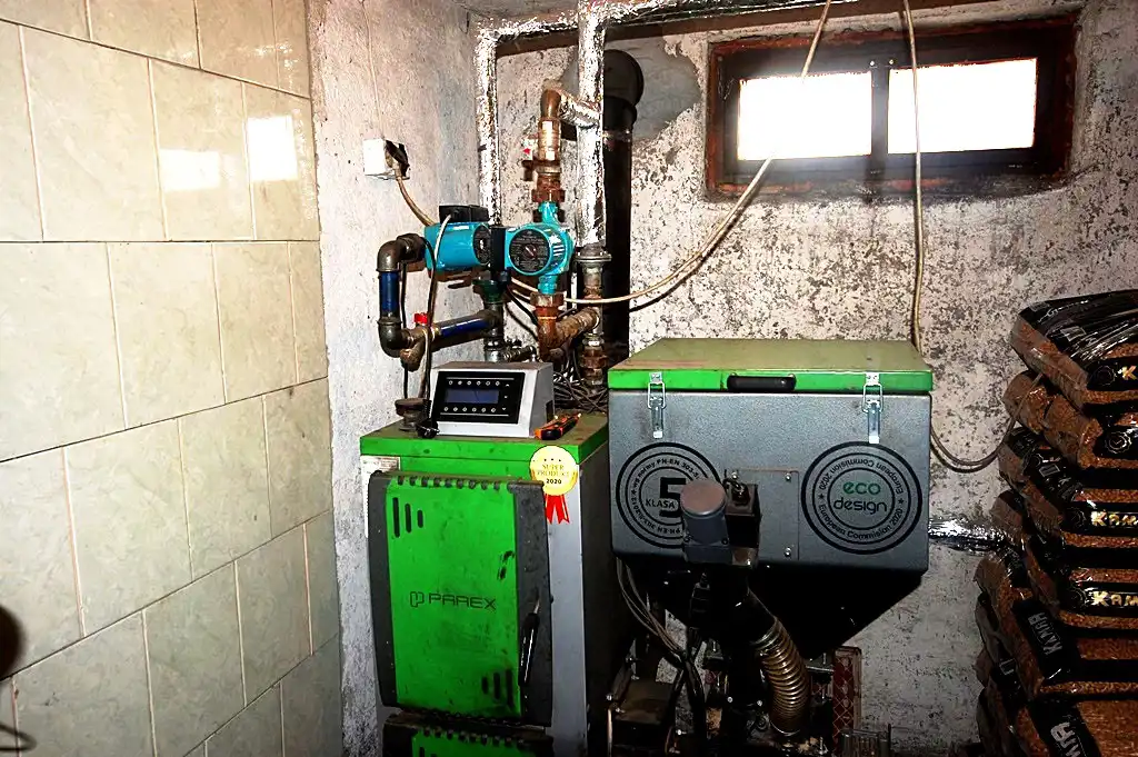 Do mieszkania przynależą 2 piwnice. W jednej piwnicy jest zamontowany piec CO na PELLET (4-letni), rurki miedziane, grzejniki convector, nowy komin zewnętrzny (3 letni).