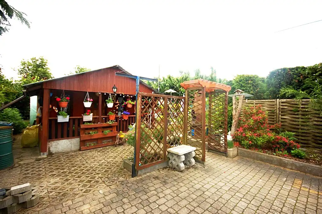 DZIAŁKA (własność) o pow. 933m2, w całości ogrodzona, szopka drewniana, druga szopka typu "blaszak", duża drewniana altana - posiada podłączony prąd. Bardzo ładnie zagospodarowana działka z licznymi nasadzeniami, ogródkiem warzywnym, drzewami owocowymi (ok. 20 szt.)