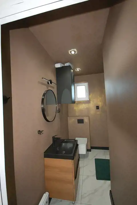 4.Łazienka ok 4,8 m2 podłoga gres, ściany gipsowane-malowane/farba hydrofobowa/, wanna,okno pcv
