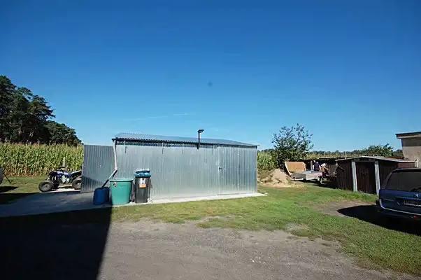 1.Garaż/blaszak/dwustanowiskowy o wymiarach 6mx5,80m, betonowa posadzka, doprowadzony prąd
