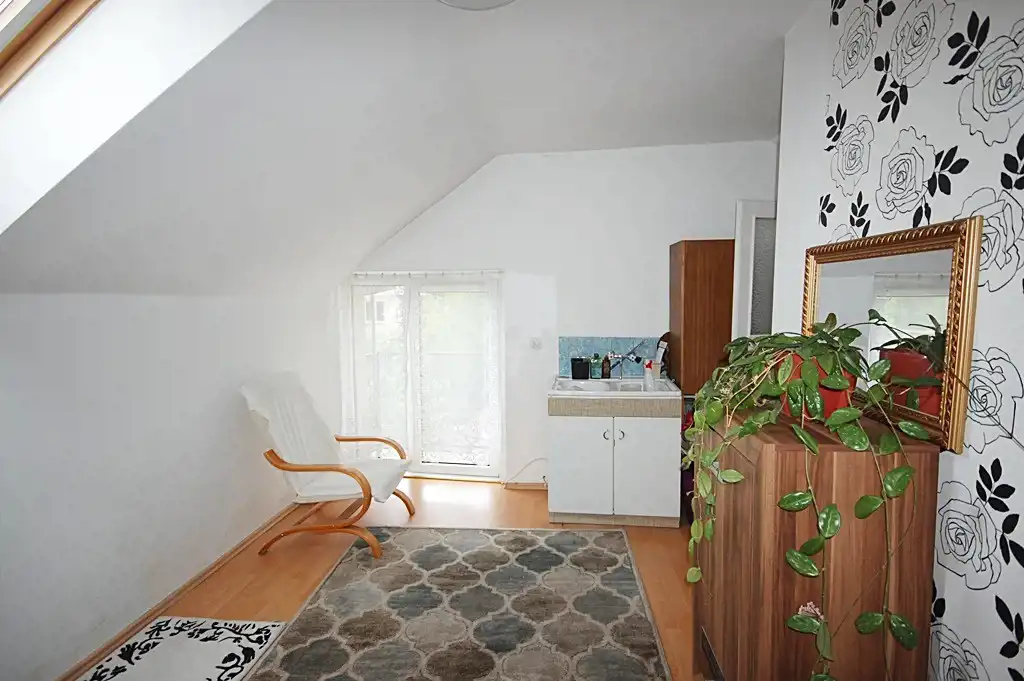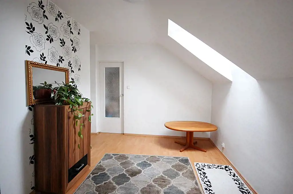 +tapeta, okno połaciowe, spiżarnia, wejście na strych