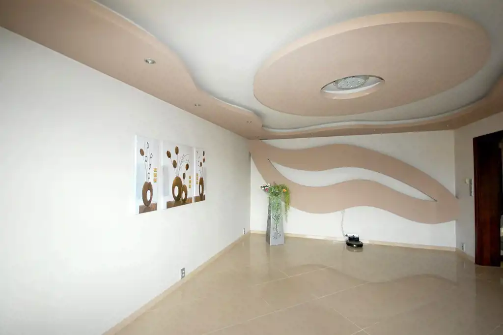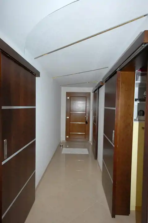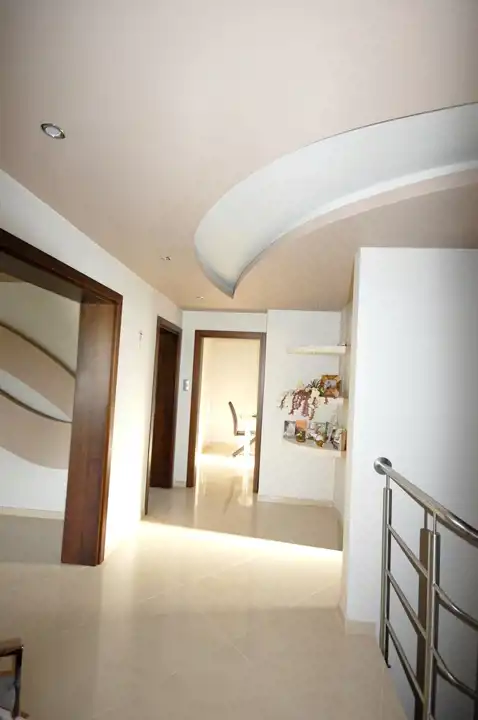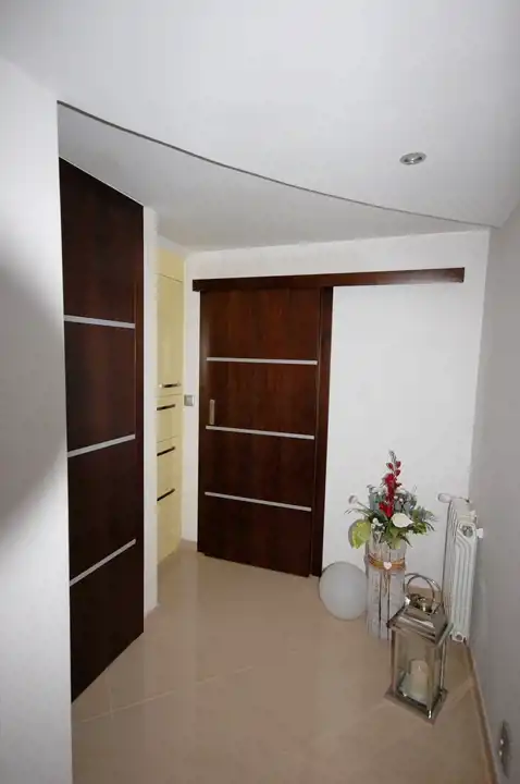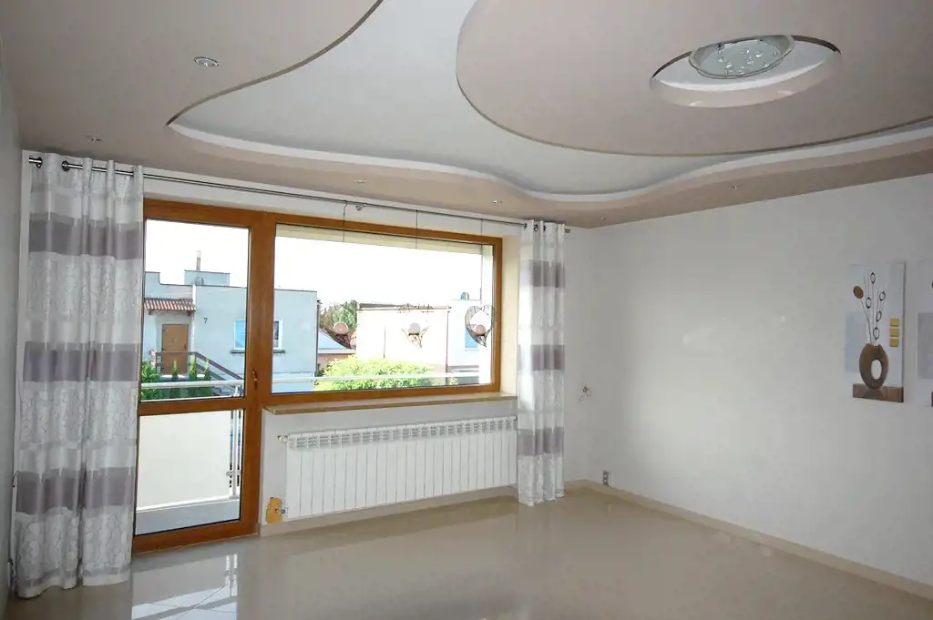 1.Salon ok. 25,50 m2 podłoga gres, ściany gipsowane-malowane, sufit z ozdobną zabudową i oświetleniem ledowym, okno balkonowe pcv z roletą zewnętrzną elektryczną, balkon o pow.4,40 m2 posadzka w kaflach gresowych, obudowa szkło hartowane w gustownej, metalowej obudowie