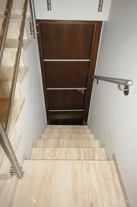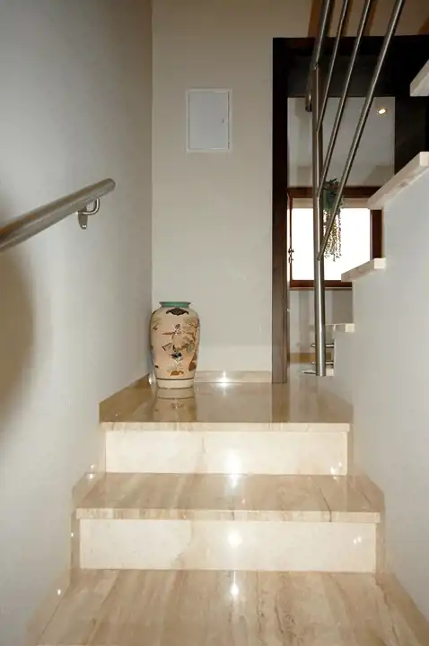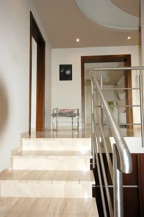 Klatka schodowa ok. 4,30 m2 stopnie schodów-kamienne, ściany gipsowane-malowane, oświetlenie i podświetlenie schodów ledowe.