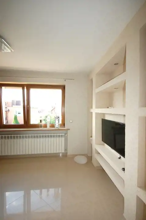 2.Pokój ok. 11,90 m2, podłoga gres, ściany gipsowane-malowane, ścienna zabudowa-półki, okno pcv z roletami zewnętrznymi-elektrycznymi.