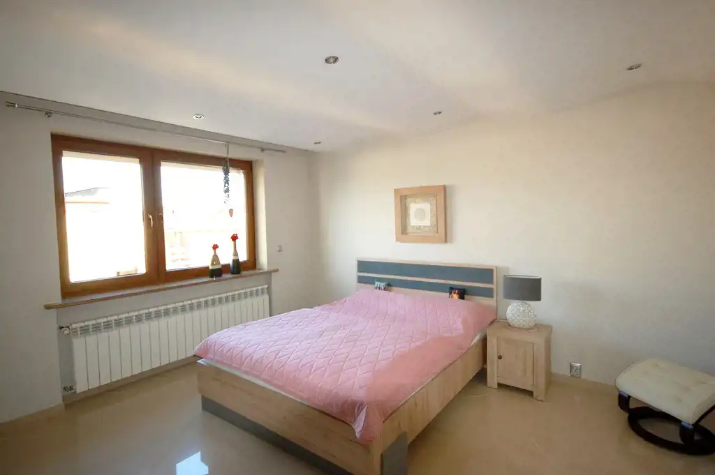 3.Sypialnia ok 16,20 m2 podłoga gres,ściany gipsowane-malowane,okno pcv z roletami zewnętrznymi-elektrycznymi.