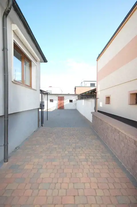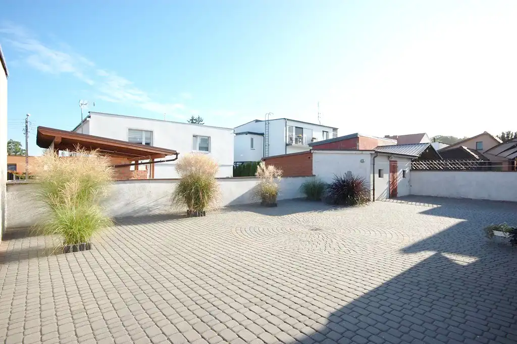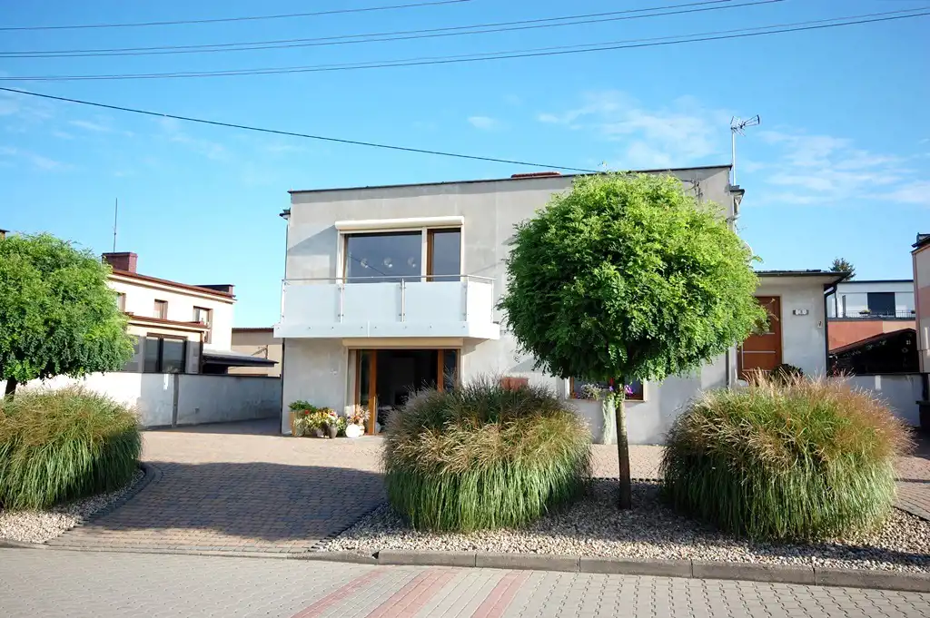 Działka o powierzchni 450 m2, z trzech stron ogrodzona/ogrodzenie murowane/,wjazd i wejście od strony ulicy przestronne, działka pokryta kostką brukową z naniesionymi punktowo nasadzeniami drzew i krzewów. Umożliwia to łatwość utrzymania ładu i czystości na posesji.