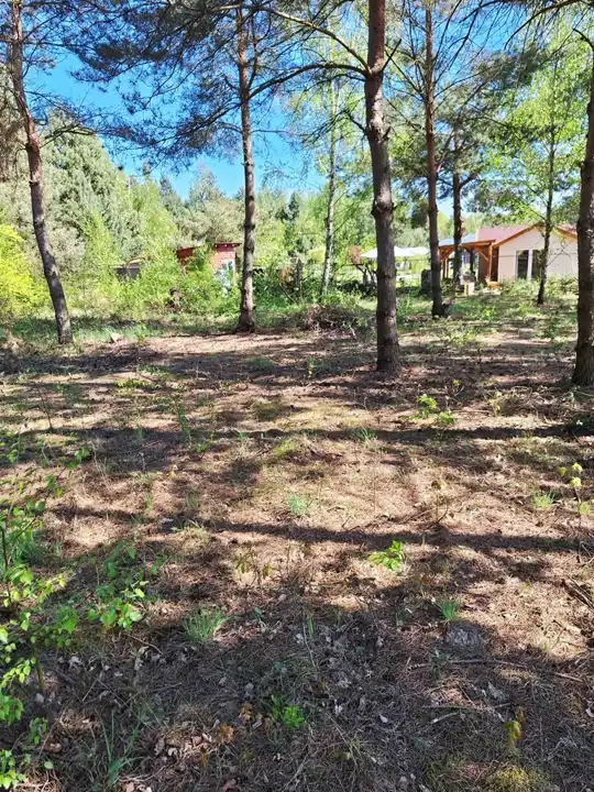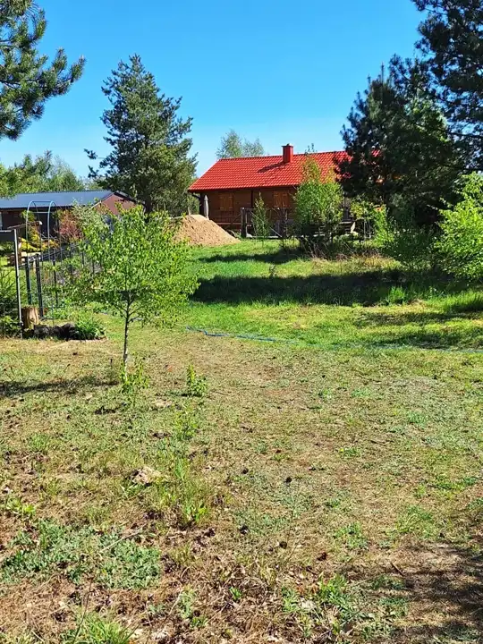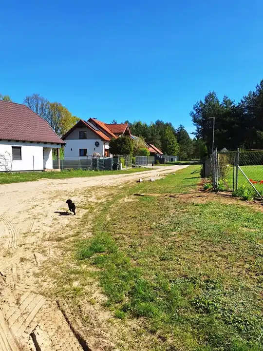 Działka jest pięknie położona, częściowo zalesiona. W środku lasu znajduje się małe osiedle kilku domków (niektóre zamieszkane przez cały rok). Droga dojazdowa od asfaltu jest wyłożona płytami betonowymi, a tylko ostatnie metry stanowią drogę gruntową. Przy budowie trzeba korzystać w własnej studni i przydomowej oczyszczalni ścieków.
