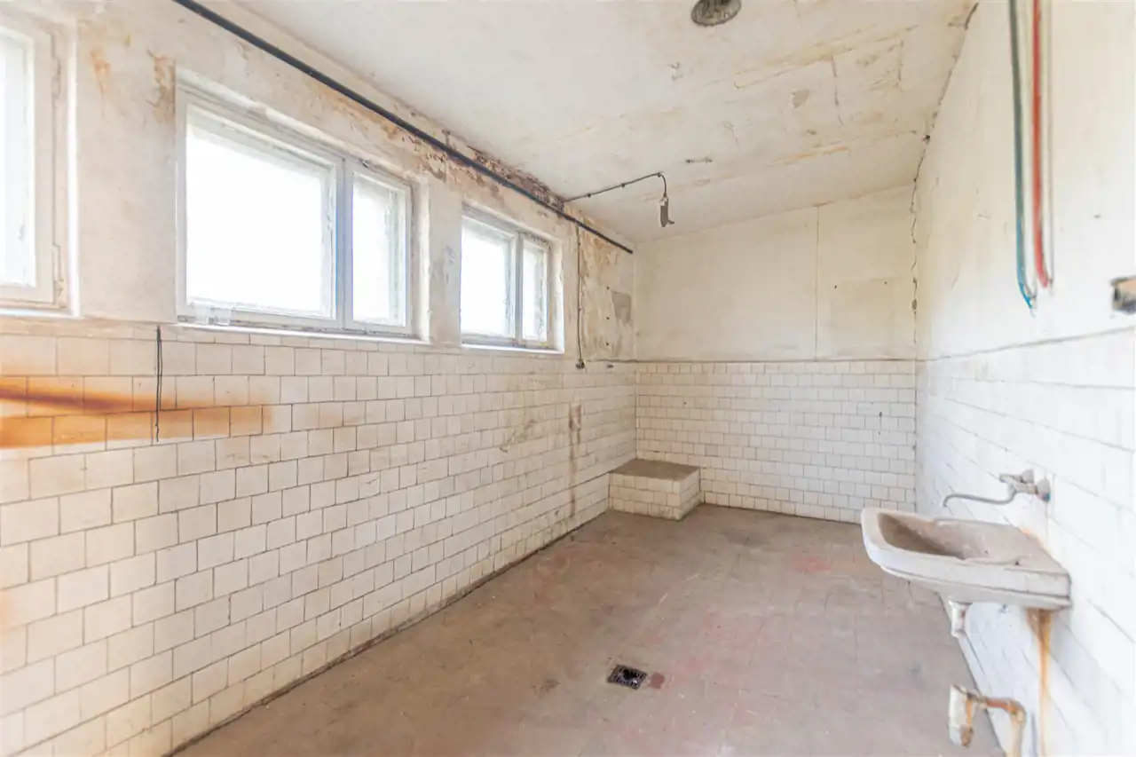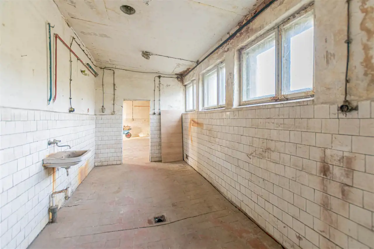 - pomieszczenie o pow. ok 20 m2; na podłodze terakota; ściany malowane z glazurą; 3 okna drewniane; umywalka; wejście od strony pomieszczenia głównego,
