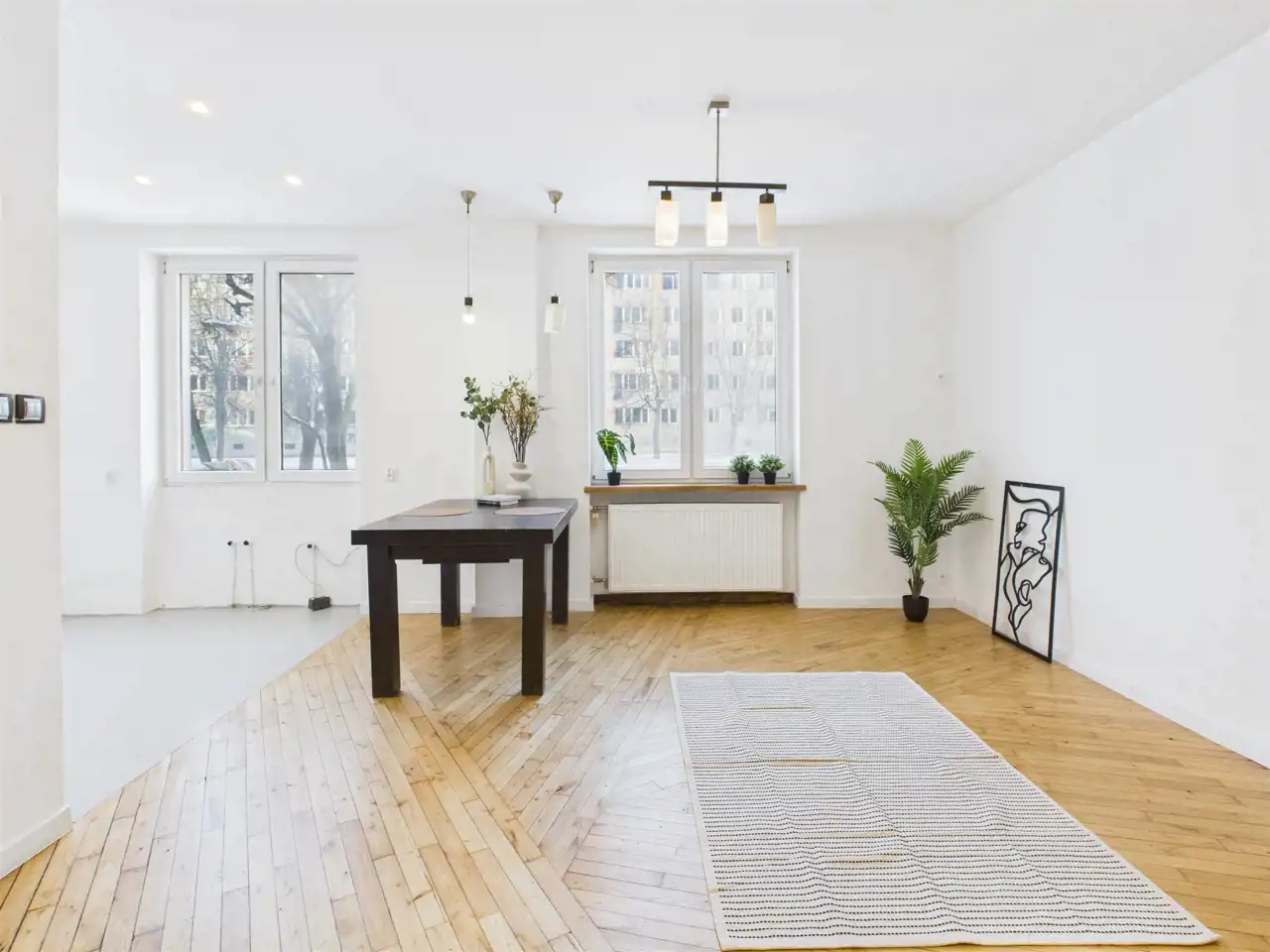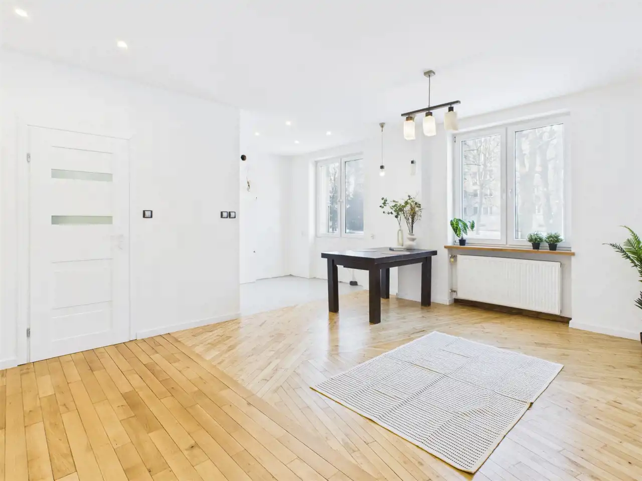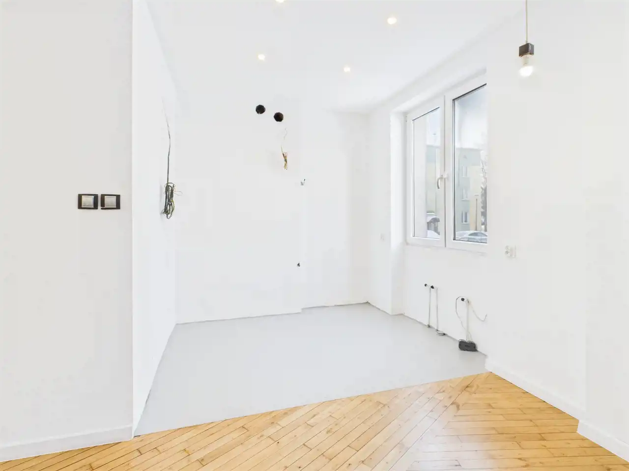 - Przestronny salon z aneksem kuchennym – otwarta strefa dzienna z dużym potencjałem aranżacyjnym