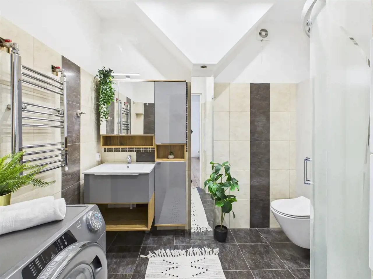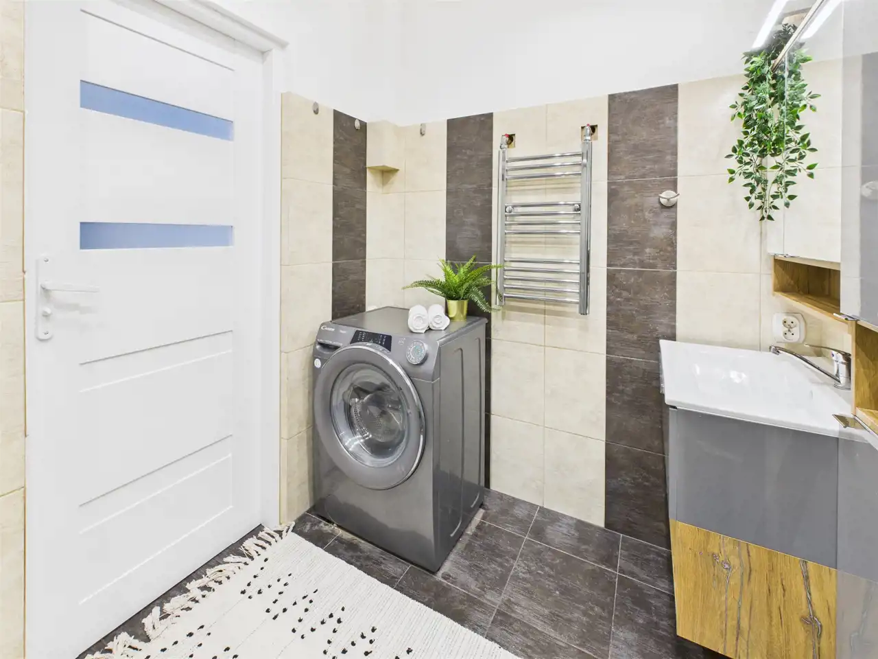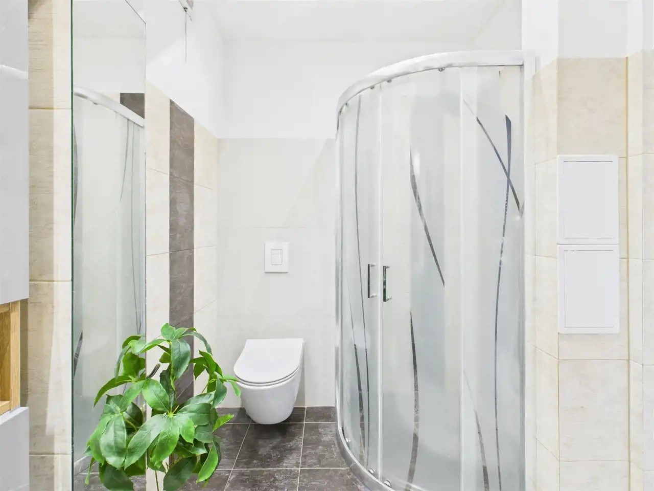 - Nowoczesna, w pełni wykończona łazienka z prysznicem