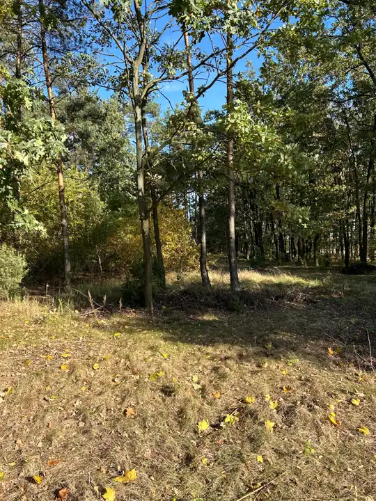 Działka zadrzewiona pięknymi brzozami oraz dębami , sucha, z trzech stron otoczona drzewami z jednej strony pole, w linii prostej od działki w odległości ok 1,5 km mamy rzekę Wisłę, teren działki na wysokiej skarpie nie grozi powodzią, okolica spokojna sporadyczna zabudowa, dojazd trasami krajowymi ok godziny z Warszawy, idealne miejsce do odpoczynku na łonie przyrody w niewielkiej odległości od wszelkich niezbędnych udogodnień(szkoły, sklepy, przedszkola).
