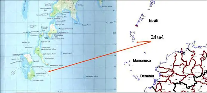 Wyspa znajduje się u dołu wyspy Naviti, zachodnie wybrzeże Fidżi, jedna z większych wysp, które tworzą w południowej części archipelag Yasawa Group. Odległość do: Port Denerau - 66 km, lotnisko Nadi - 66 km, 20 min śmigłowcem. Yasawa Group składa się z sześciu głównych wysp. W Yasawa Group jest wspaniała pogoda, lepsza niż innych częściach kraju i piękna sceneria, z białym piaszczystymi plażami i lagunami. Okolica wyspy obejmuje Navutu Stars Resort, Nanuya Island Resort, Turtle Island Yasawa. Wyspa ma powierzchnię około 45 hektarów (113 akrów) i posiada doskonałe właściwości, w tym trzy prywatne, białe, piaszczyste plaże. Średnia temperatura na wyspie od 25 do 27 stopni (z 2-4 stopnia odchylenia w chłodniejsze miesiące). Głównym środkiem transportu na wyspie jest śmigłowiec, samolot lub statek. Od międzynarodowego lotniska Nadi to tylko 15-20 minut lotu na wyspę. Śmigłowiec jest także dostępny z Wyspy Denarau. Morski transfer przez Yasawa Flyer to około 3 i pół godziny, działających codziennie w drodze do Yasawa Grupa z portu Denarau. Cena do uzgodnienia.