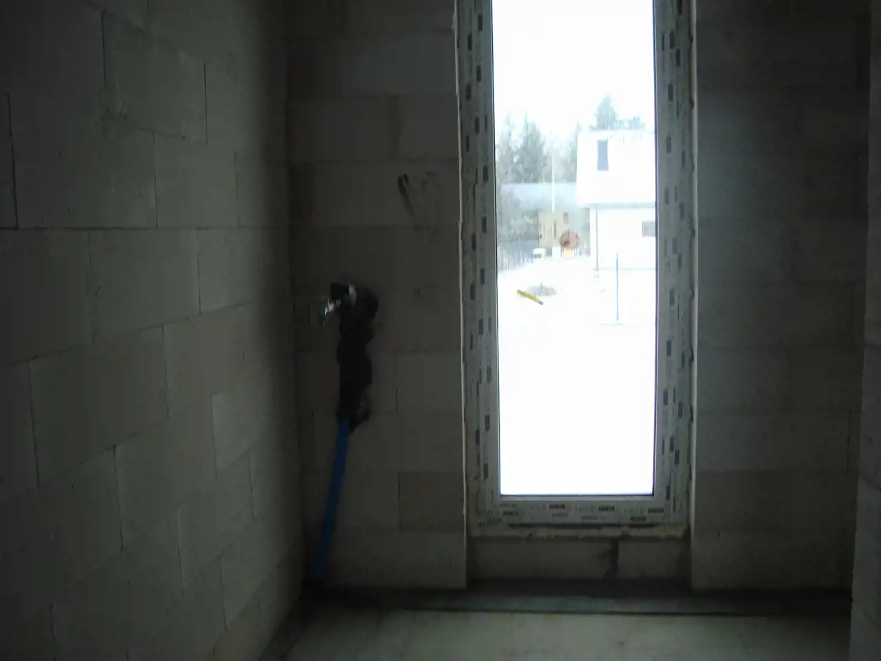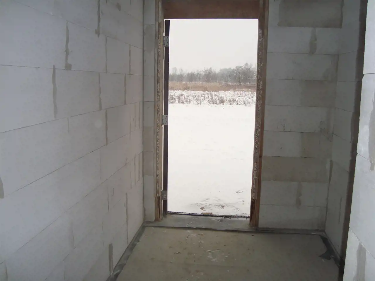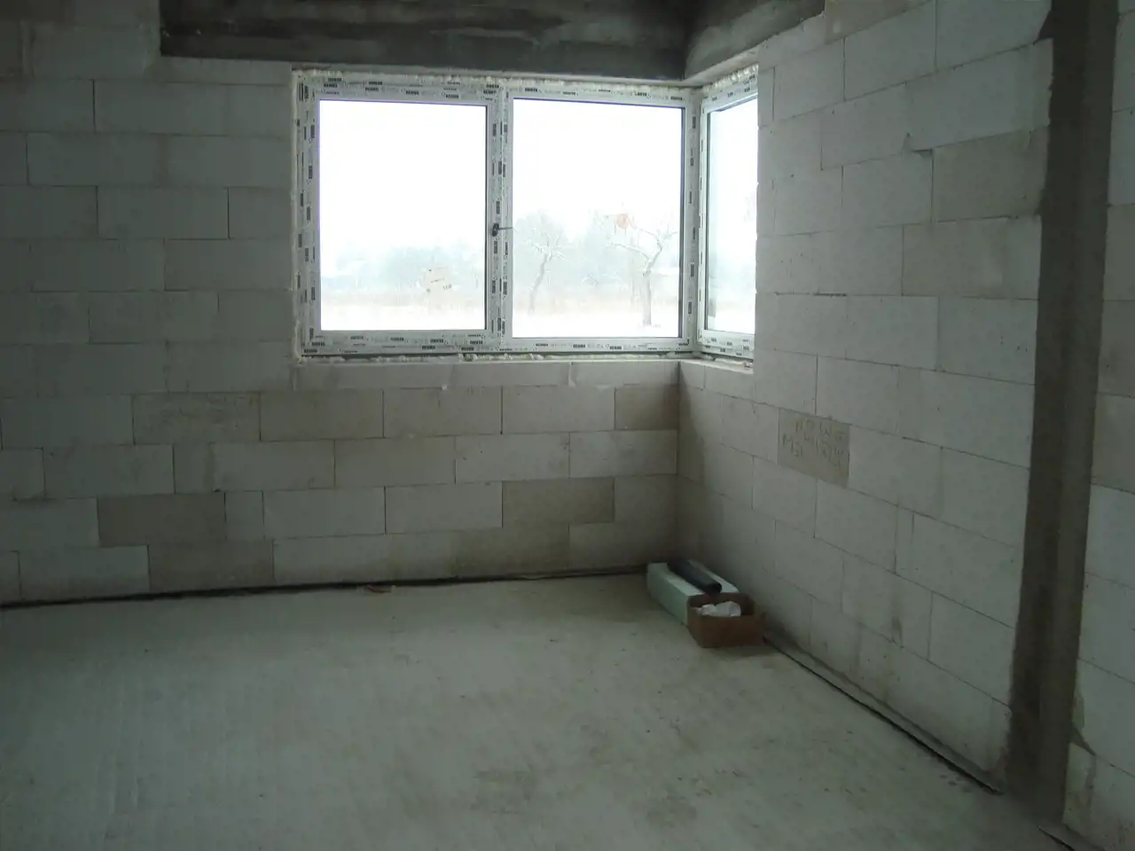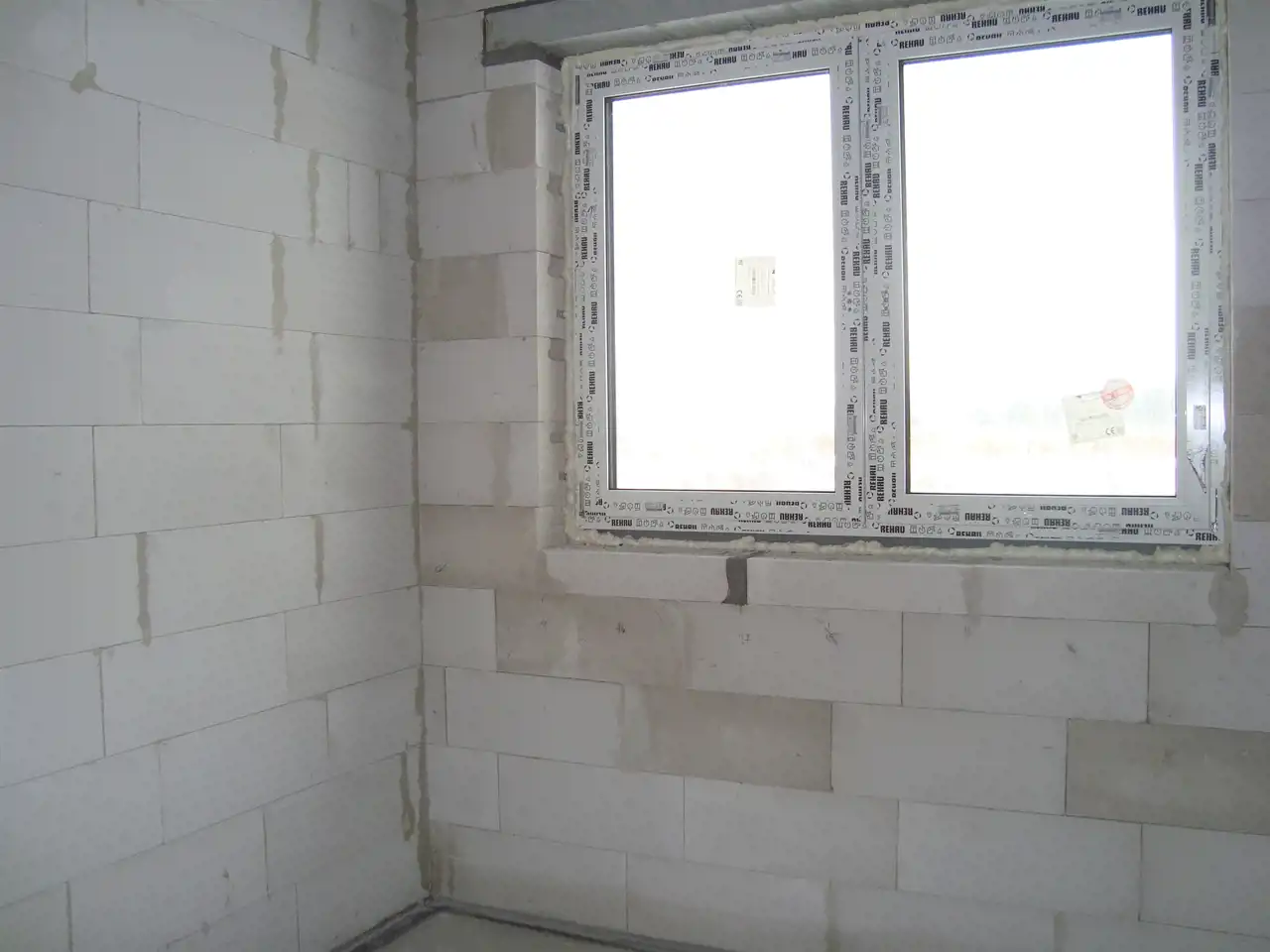 Zbudowany z bloczków betonu komórkowego. Dach pokryty blachodachówką. Okna PCV.