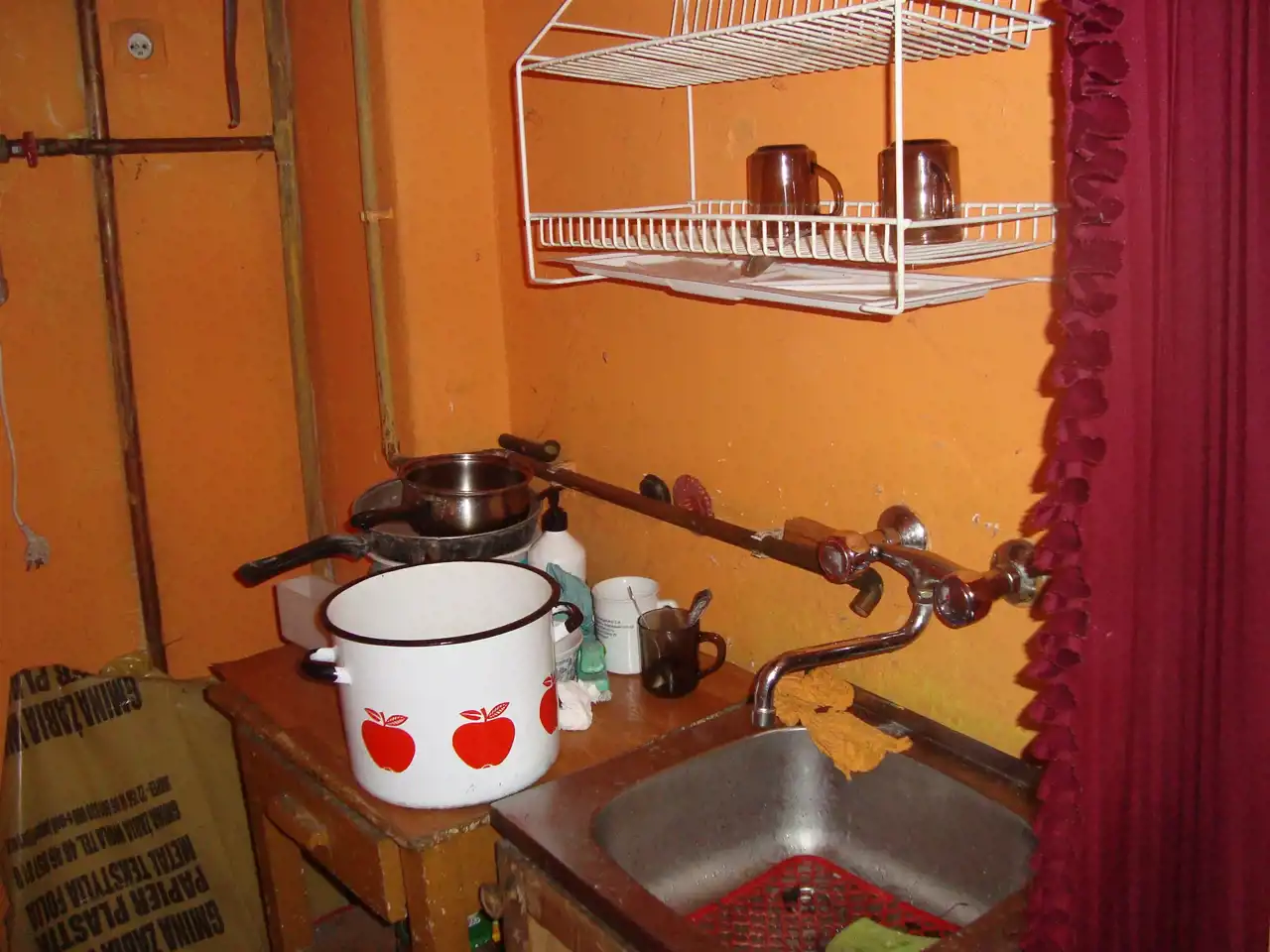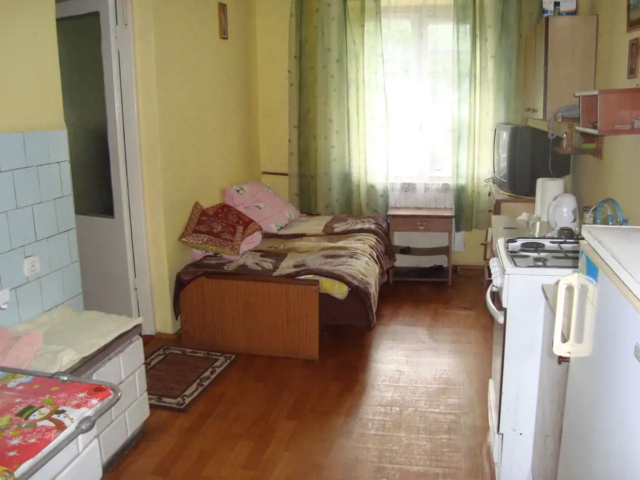 W tej chwili budynek mieści kuchnię - 15 m2, pokój - 23m3, łazienkę- 4,5m2, pomieszczenie gospodarcze, ganek, tzw. kuchnię letnią i strych.