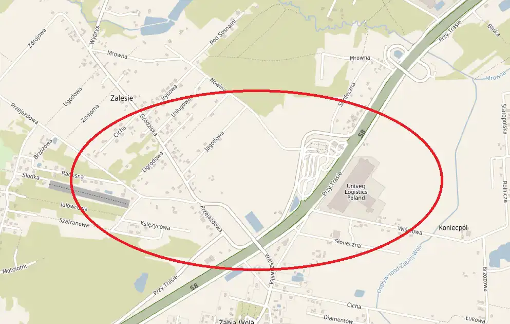 Na sprzedaż teren inwestycyjny o powierzchni 5201 m2, zlokalizowany w miejscowości Przeszkoda (gmina Żabia Wola), tuż przy trasie S8.