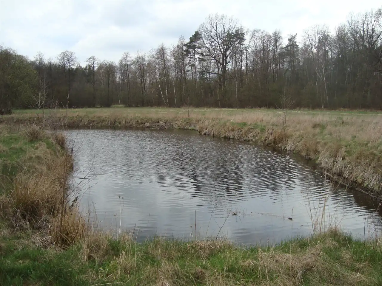 Na działce są dwa stawy. Duży staw: długość 100 m, szerokość do 23 m, głębokość do 2,5 m, powierzchnia 1.500 m2 . Mały staw: długość 70 m, szerokość do 17 m, głębokość do 2 m, powierzchnia 1.000 m2 . 200 metrów brzegu rzeki Utraty.