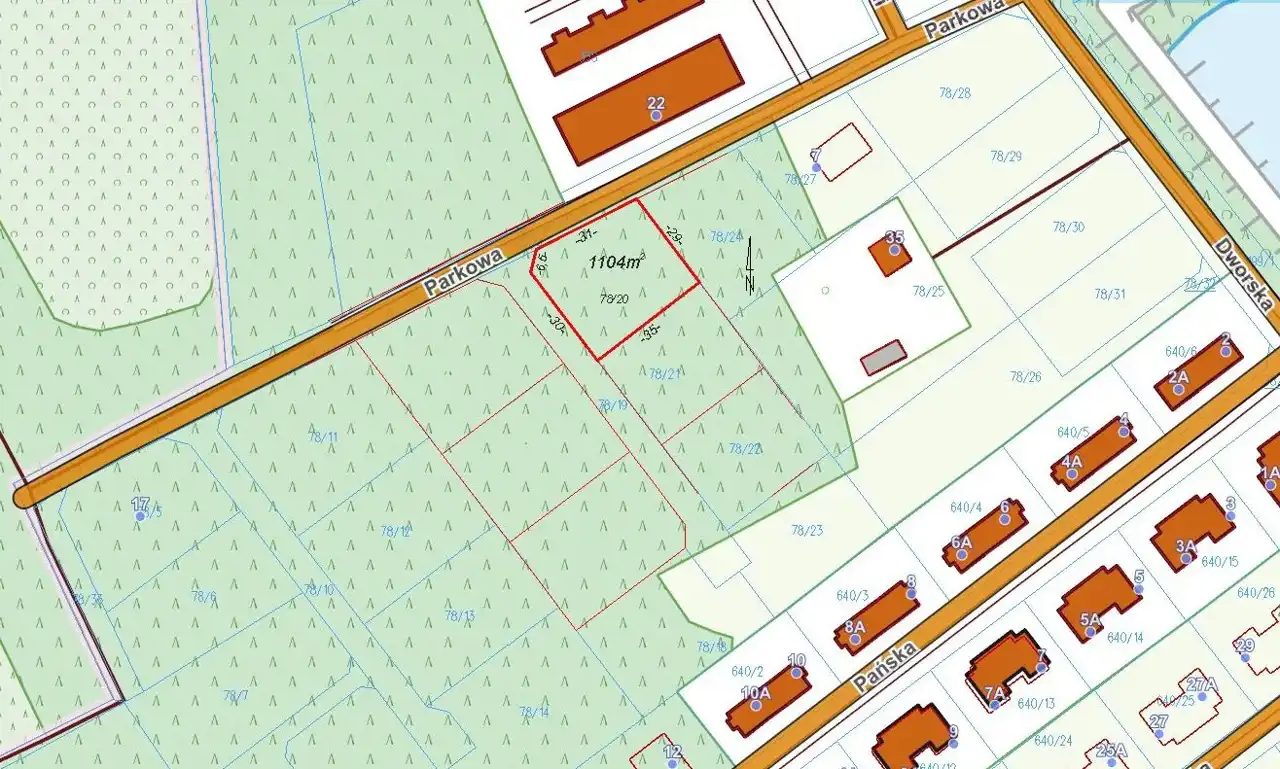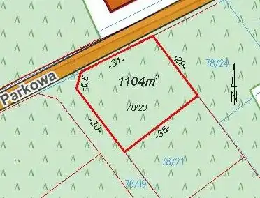 Działka budowlana 1104 m2 przy ul. Parkowej w Osowcu, gm. Żabia Wola. Kształt zbliżony do prostokąta o średnich wymiarach 32x35m, dłuższym, północnym bokiem do utwardzonej drogi gminnej. Przy działce prąd i światłowód, a wodociąg, kanalizacja i gaz są w ulicy dojazdowej w odległości ok. 100 m. W planie zagospodarowania przestrzennego zabudowa mieszkaniowa jednorodzinna wolnostojąca lub bliźniacza wraz z budynkami gospodarczymi i garażami, maksymalnej wys. 3 kondygnacji plus podpiwniczenie i z zachowaniem min. 60% pow. biologicznie czynnej.