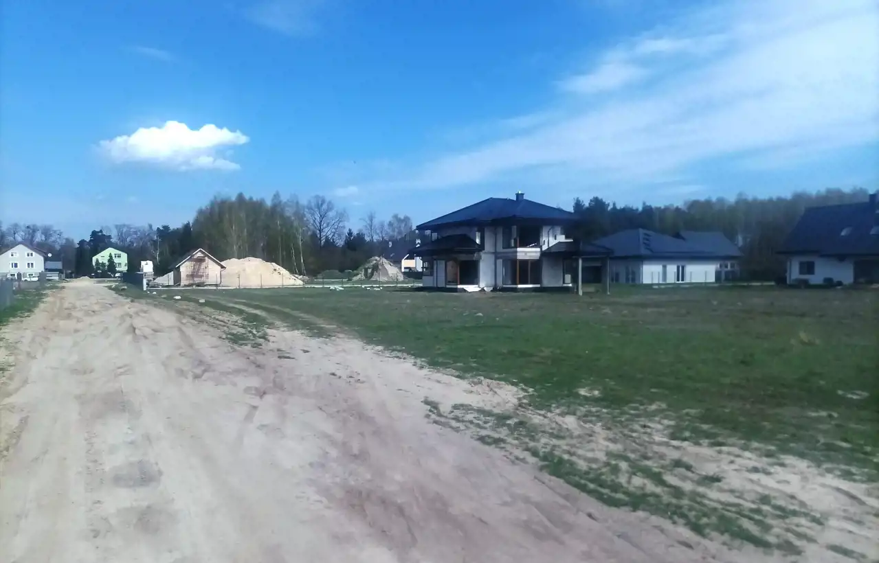 Działka sucha wysoka, wyczyszczona, gotowa do stawiania domu. Wokół nowa zabudowa i dużo starej zieleni. Położona pośród działek z nowego podziału, w trakcie zabudowy. Na działkach sąsiednich powstaje kilka nowych domów. Otoczenie ciche i zielone. Blisko do szkoły w Józefinie i do sklepów. Dobry dojazd samochodem, a także autobusem do Grodziska, targu miejskiego, basenu i stacji WKD. W Grodzisku także supermarkety i stacja kolei podmiejskich PKP i pół godziny jazdy do Warszawy. Równie szybko trasą katowicką samochodem lub busem.