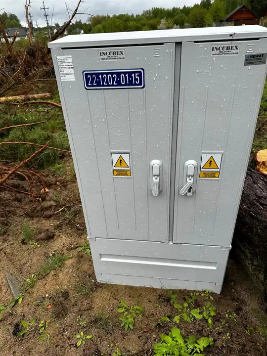 Media :woda ( liczniki na każdej z działek); prąd na działce ( skrzynki elektryczne przy każdej z działek). Gaz w drodze gminnej ( złożony wniosek o przyłącze).