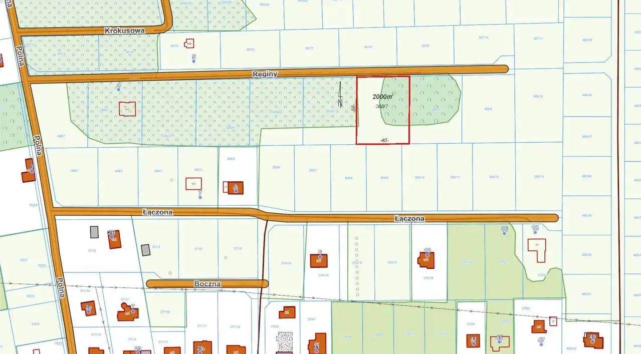 Działka budowlana 2000m2 w Żelechowie, gm. Żabia Wola. Prostokąt 40x50m, krótszym bokiem do częściowo utwardzonej ulicy Reginy. Na działce skrzynka elektryczna, a wodociąg w odl. 60 m. W planie zagospodarowania przestrzennego działka przeznaczona pod zabudowę jednorodzinną lub bliźniaczą z budynkami gospodarczymi i garażami, do 3 kondygnacji wys. i z zachowaniem min. 50% powierzchni biologicznie czynnej. Wymiary działki, a także plan zagospodarowania zezwalają na dalszy podział na 2 działki po 1000 m2.