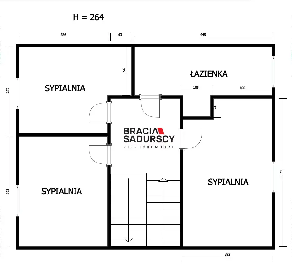 - Trzy oddzielne pokoje o powierzchniach: 13,5 /10 / 7 m2.