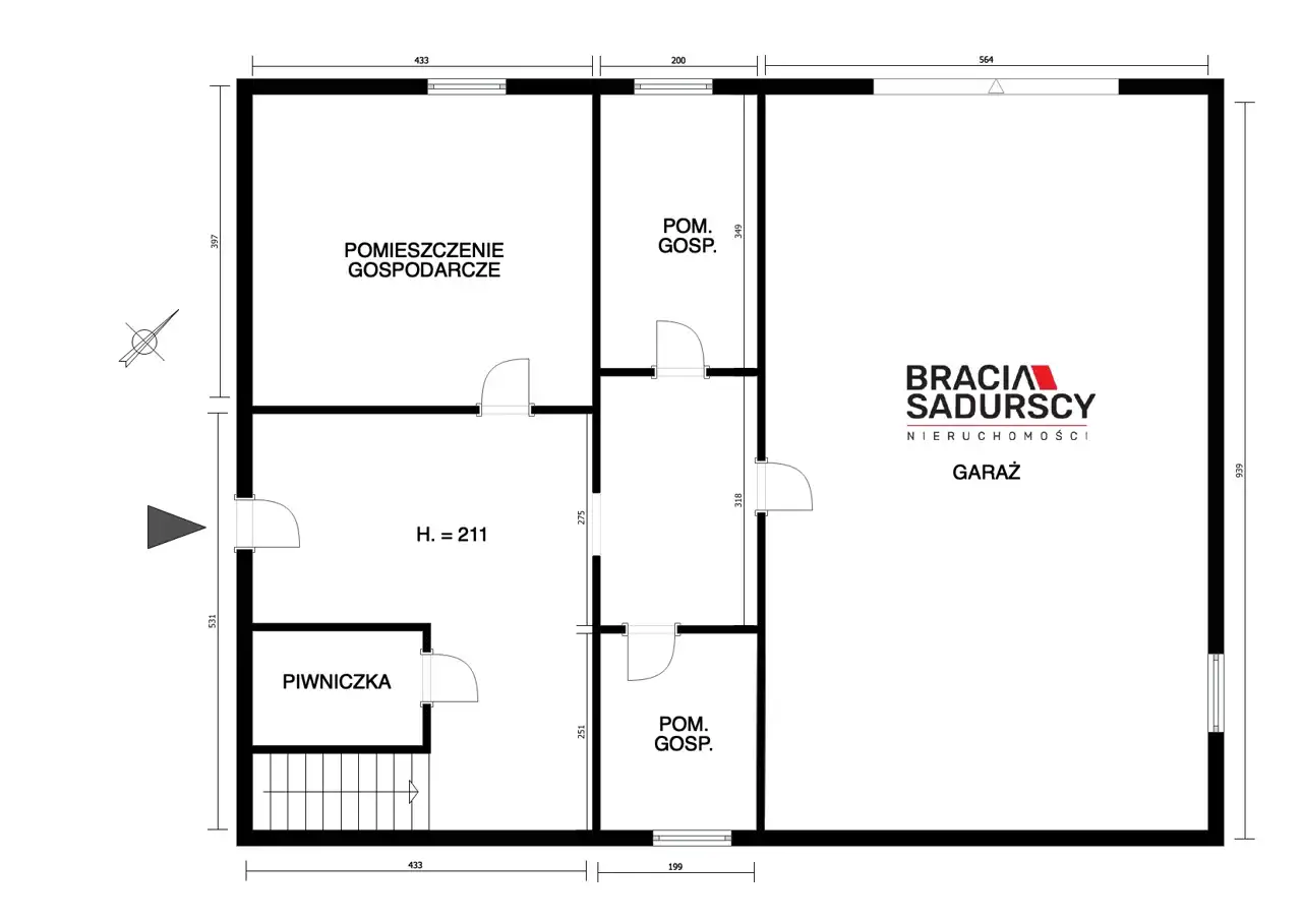 - PRZYZIEMIE (parter) w skład którego wchodzą: garaż ok. 50 m2, pomieszczenia gospodarcze 17m2, 7 m2, 5 m2 oraz hall czyli wejście do budynku ok. 23 m2