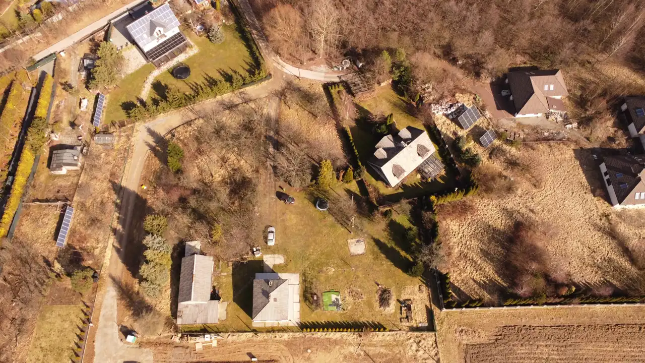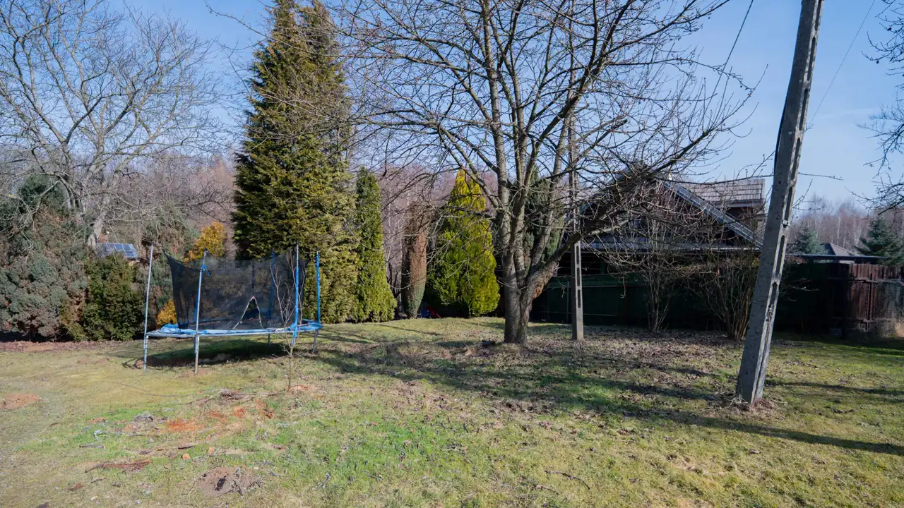 - Działka częściowo zagospodarowana, lekko nachylona, nieregularny