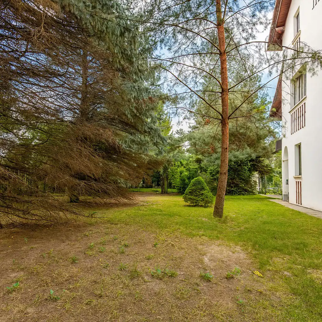 W domu podłączona kanalizacja miejska, woda, gaz oraz prąd. Na działce drzewa.