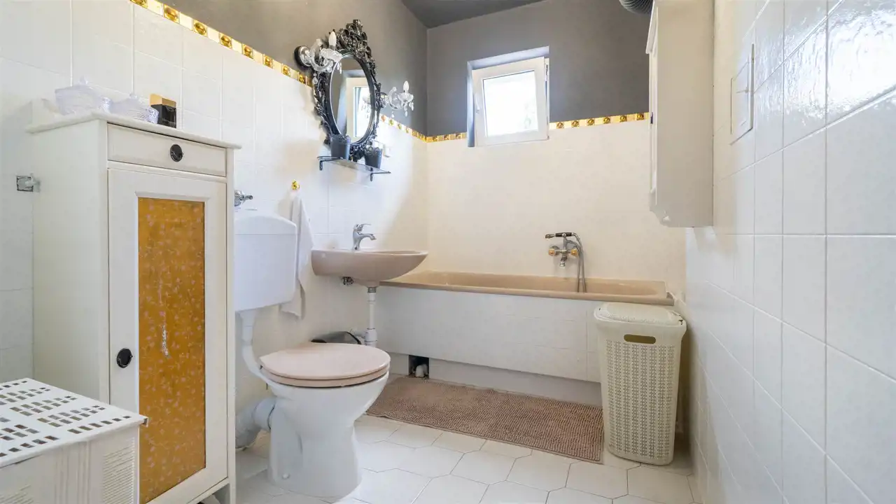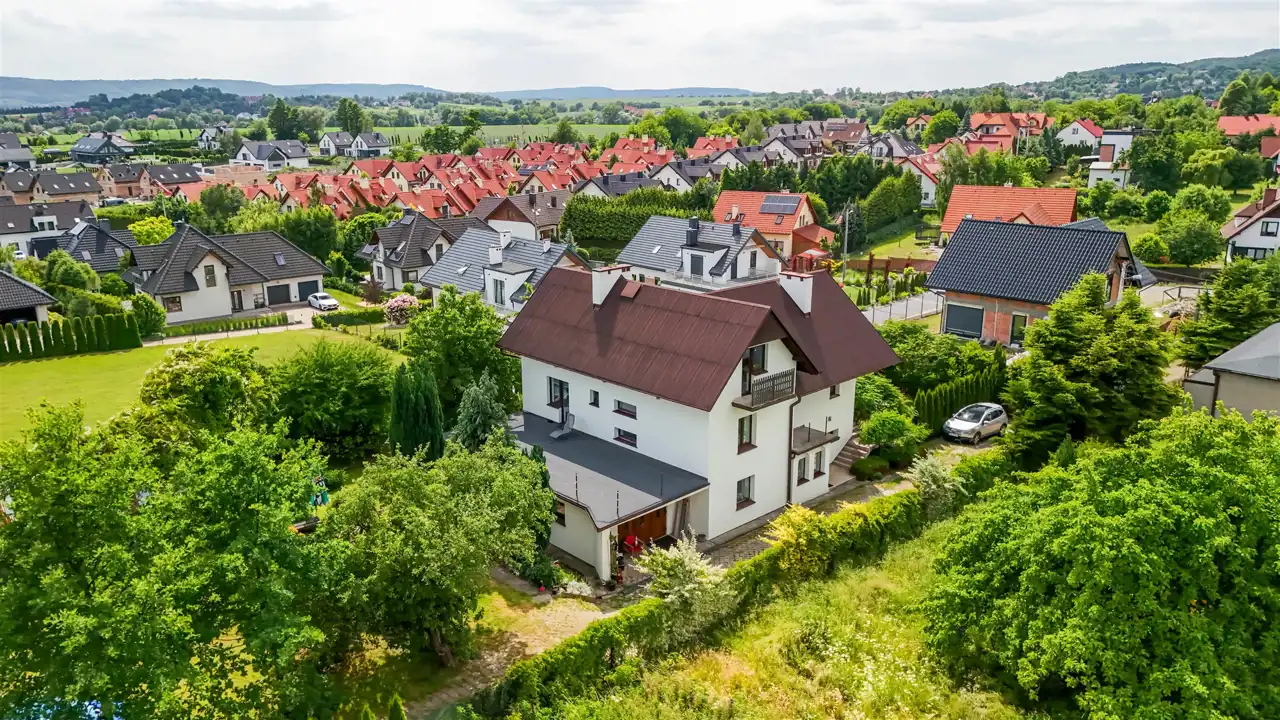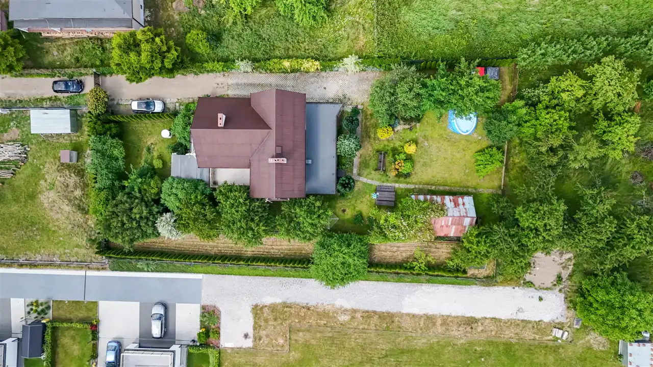 - Wolnostojący dom o powierzchni całkowitej ok. 262 m2 i użytkowej ok. 215 m2. Dom wybudowany w 1993 r metodą tradycyjną z pustaków i cegły, w kolejnych latach był remontowany, rozbudowywany. Ogrzewanie centralne i ciepła woda z kotłów dwufunkcyjnych gazowych.
