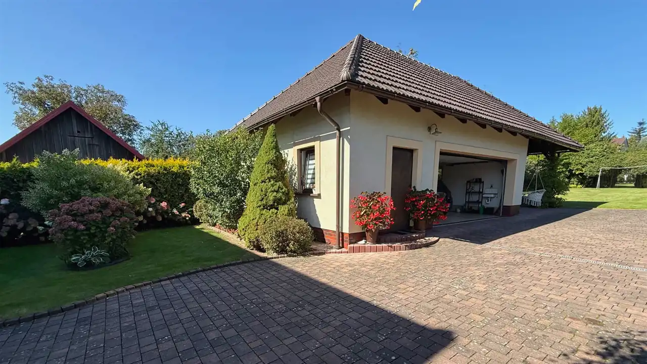 Nieruchomość położona na 13,12 arowej ogrodzonej posesji z pięknie, urządzonym ogrodem.
