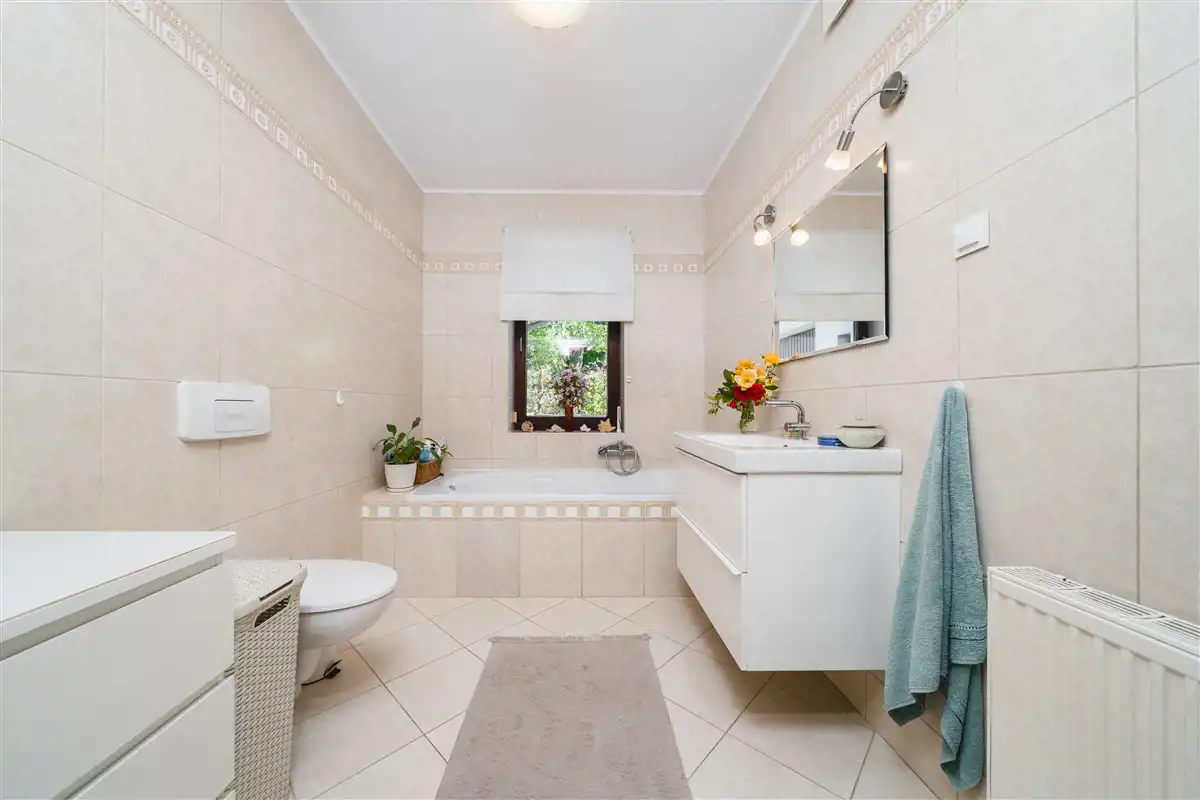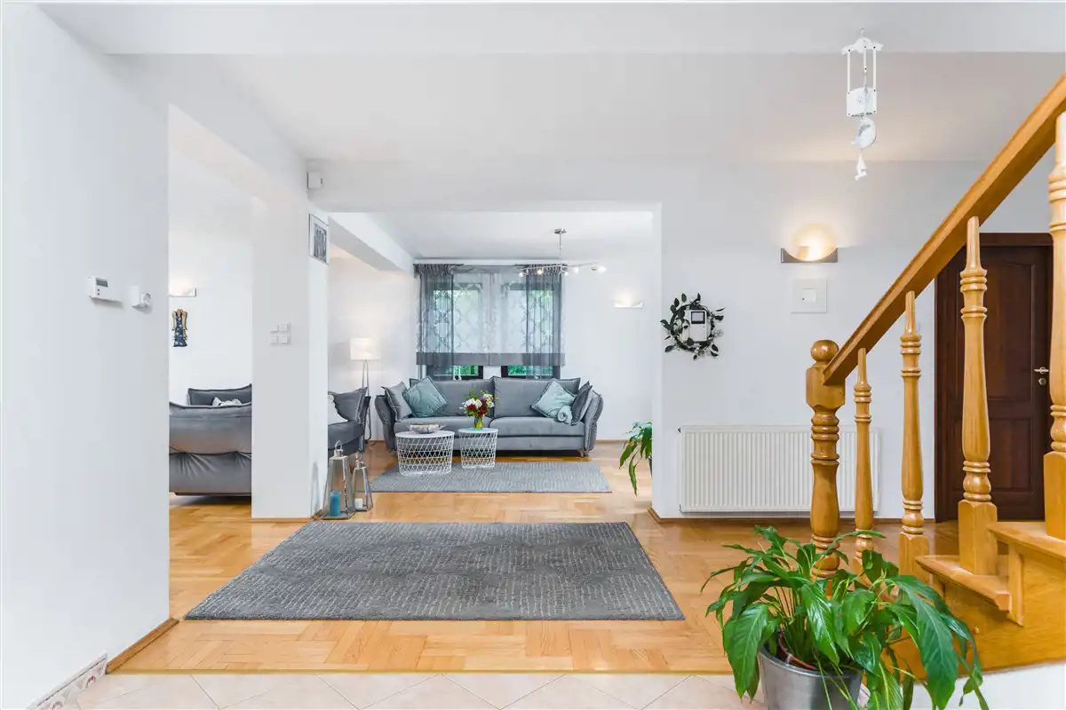 Nieruchomość budowana od końca końca lat 90-tych, wykończona i zamieszkana od 2003 roku. Dom budowany według indywidualnego projektu, "dla siebie", z myślą o komforcie właścicieli, z użyciem wysokiej jakości materiałów. Staranne wykończenie i wyposażenie tworzy harmonijną całość. Bardzo przestronny rozkład, słoneczne wnętrza.