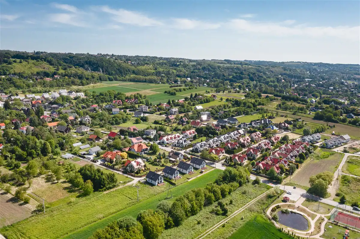 Lokalizacja nieruchomości łączy możliwość korzystania z walorów rekreacyjnych pobliskich terenów przyrodniczych, jednocześnie zapewniając komfort korzystania z infrastruktury miasta (do Rynku Głównego 18 km). W połączeniu z dogodną komunikacją (autobus, busy, pociąg z Zabierzowa jadący 12-16 minut do centrum Krakowa) i dobrze rozwiniętą infrastrukturą handlowo - usługową otrzymujemy wyjątkowy komfort życia.