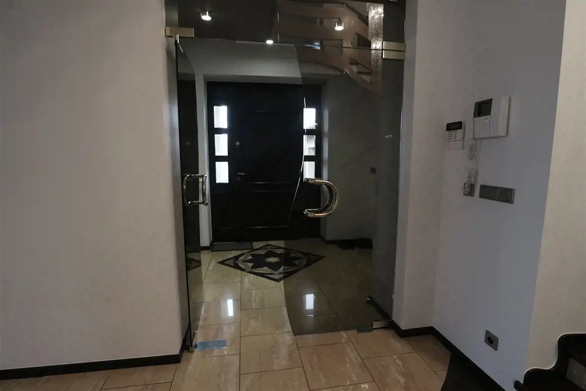 Ciekawe, podwieszane sufity z różnorodnym oświetleniem. Dom wyposażony w alarm z powiadomieniem oraz wideodomofon. Dla bezpieczeństwa dodatkowo okna z szybami antywłamaniowymi.