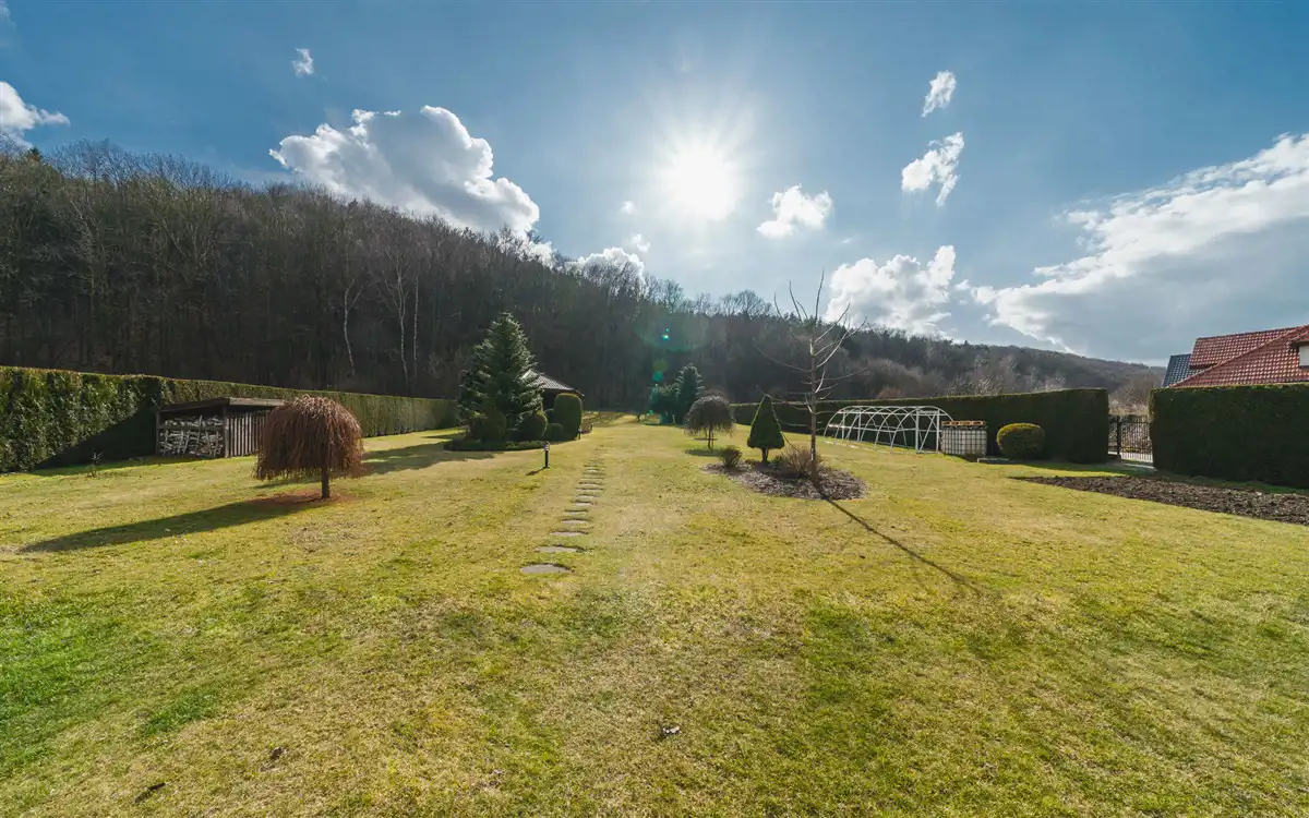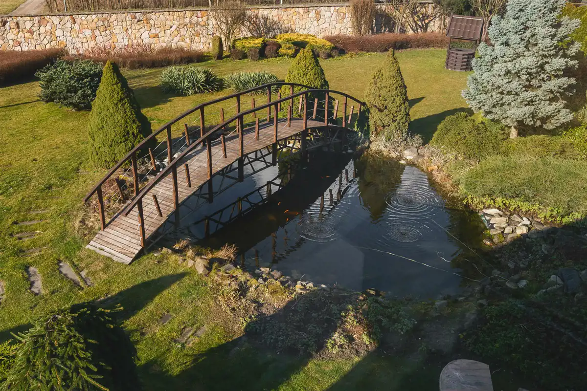 OGRÓD: oczko wodne z dużą ilością ryb, dużo różnorodnych nasadzeń. Odwodnienie działki. Na działce altana z grillem i piwniczka na wina.